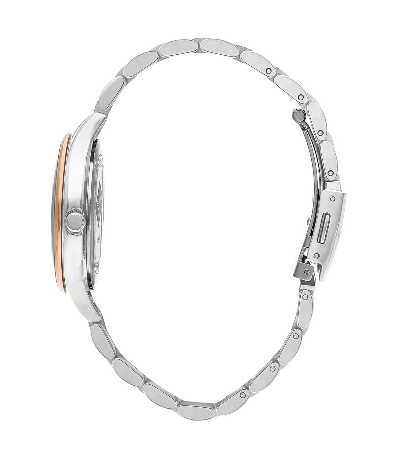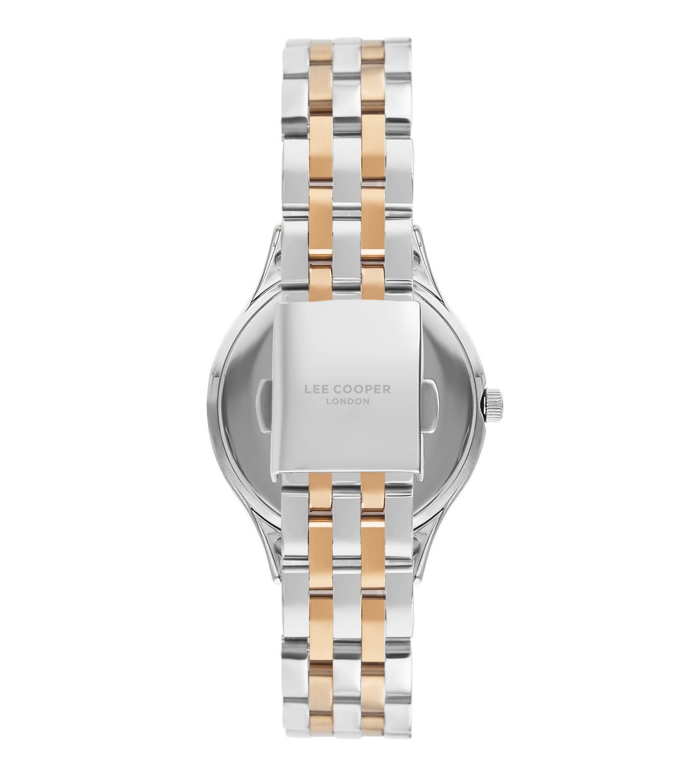 Женские часы Lee Cooper LC07867.530 выполнены в классическом стиле и сочетают строгий дизайн с надёжным механизмом. Модель оснащена кварцевым механизмом, обеспечивающим точность хода и минимальное обслуживание. Корпус круглой формы имеет размер 35 мм, изготовленный из суперметалла, идеально сбалансирован и элегантен. Неповоротный безельБезельВнешний ободок, закрепляющий стекло. В спортивных часах так называется поворотное кольцо с делениями на циферблате, выполняет роль таймера – замеряет отрезки времени на шкале. Неподвижный безель – элемент декора. Однонаправленно вращающийся безель на дайверских часах позволяет фиксировать моменты погружения и выныривания на поверхность. с IP-покрытиемIP-покрытиеМетод ионного напыления. Демонстрирует повышенную устойчивость к истиранию, окислению и химическим веществам. Под воздействием высокого давления и температуры около 1500°C молекулы металла надёжно соединяются с частицами корпуса часов..  Циферблат серебристого цвета дополнен вставками из циркона для чёткого отсчёта времени. Защиту циферблата обеспечивает минеральное стеклоМинеральное стеклоМинеральное стекло представляет собой искусственно выращенный минерал кварца. Такое стекло отличается особой устойчивостью к повреждениям и царапинам. Уступает по некоторым качествам сапфировому стеклу., устойчивое к мелким механическим повреждениям. Браслет из нержавеющей стали с частичным IP-покрытиемIP-покрытиеМетод ионного напыления. Демонстрирует повышенную устойчивость к истиранию, окислению и химическим веществам. Под воздействием высокого давления и температуры около 1500°C молекулы металла надёжно соединяются с частицами корпуса часов. фиксируется на раскладной застёжкеРаскладная застёжкаТакой тип застёжки используется только на браслетах из металла. Она никогда не раскрывается полностью, происходит разделение на 2 и более частей. Раскладывающая застёжка снизит вероятность потери часов к минимуму.. Водозащита 3 АТМ позволяет использовать часы в повседневных условиях без риска повреждения от случайных брызг воды. Это сочетание классического дизайна, прочности материалов и качества исполнения для уверенных в себе женщин.