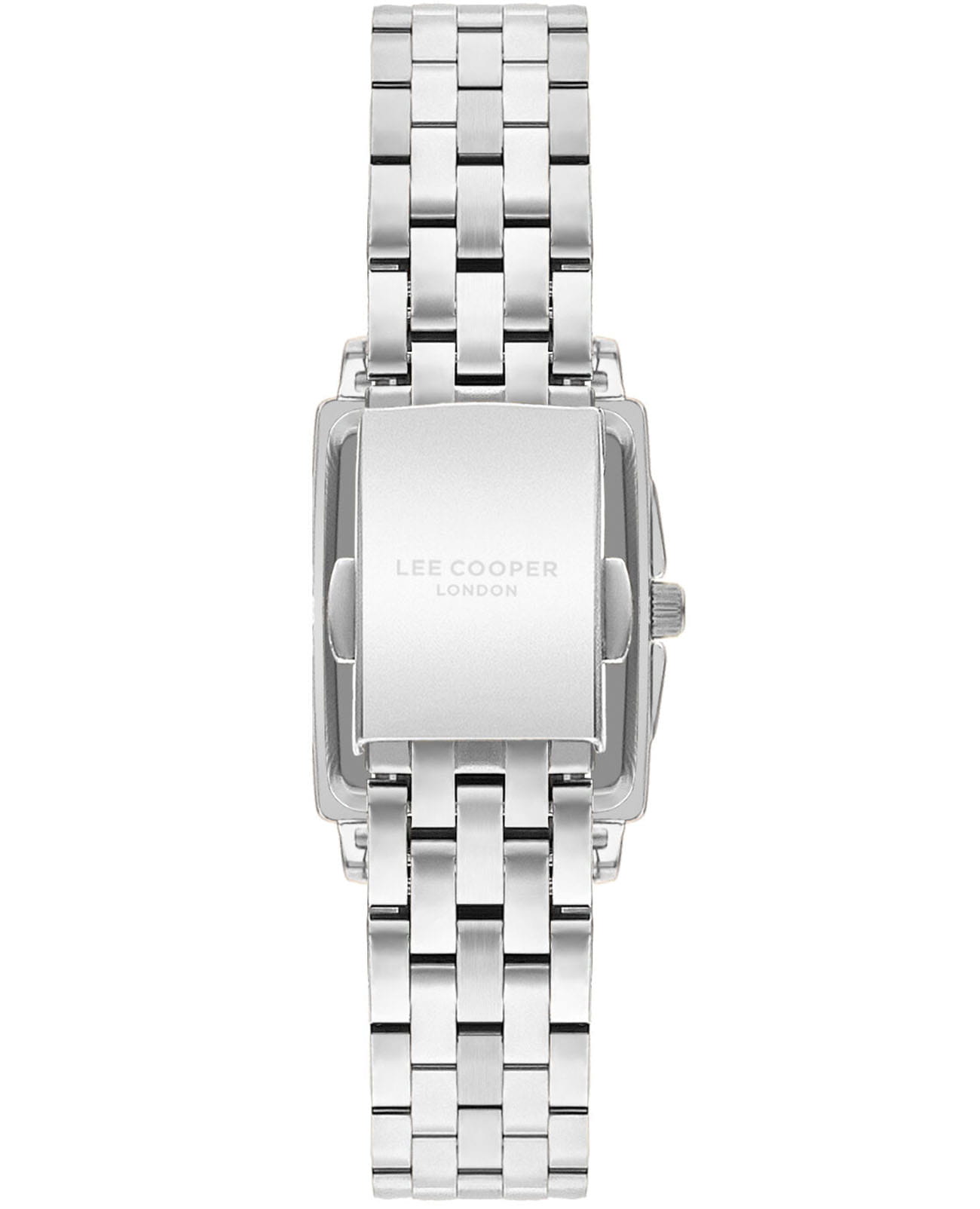 Женские часы Lee Cooper LC07940.330 выполнены в классическом стиле и сочетают строгий дизайн с надёжным механизмом. Модель оснащена кварцевым механизмом , обеспечивающим точность хода и минимальное обслуживание. Корпус квадратной формы имеет размер 27 х 33 мм , изготовлен из металла. Циферблат белого цвета дополнен индексами для чёткого отсчёта времени. Защиту циферблата обеспечивает минеральное стекло минеральное стеклоМинеральное стеклоМинеральное стекло представляет собой искусственно выращенный минерал кварца. Такое стекло отличается особой устойчивостью к повреждениям и царапинам. Уступает по некоторым качествам сапфировому стеклу.. Браслет из нержавеющей стали оснащён раскладной застёжкойРаскладная застёжкаТакой тип застёжки используется только на браслетах из металла. Она никогда не раскрывается полностью, происходит разделение на 2 и более частей. Раскладывающая застёжка снизит вероятность потери часов к минимуму.  устойчивое к мелким механическим повреждениям. Водозащита 3 АТМ позволяет использовать часы в повседневных условиях без риска повреждения от случайных брызг воды. Это сочетание классического дизайна, прочности материалов и качества исполнения для уверенных в себе женщин.