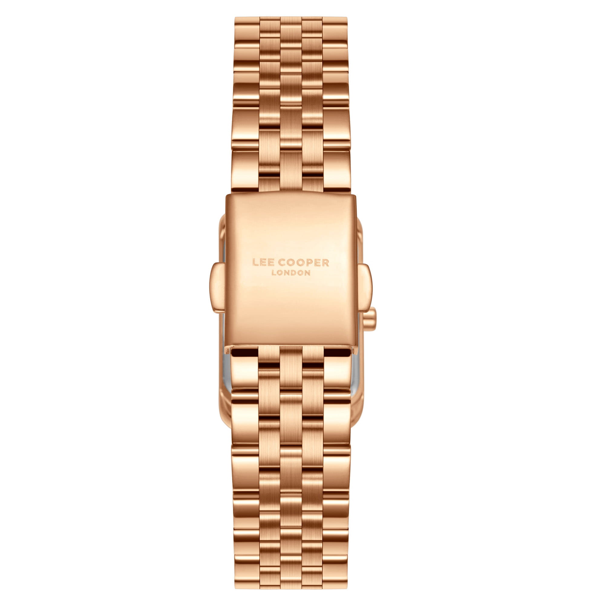 Женские кварцевые часы Lee Cooper — это стильный аксессуар, сочетающий в себе элегантность и надёжность. Модель выполнена из с частичным IP-покрытиемIP-покрытиеМетод ионного напыления. Демонстрирует повышенную устойчивость к истиранию, окислению и химическим веществам. Под воздействием высокого давления и температуры около 1500°C молекулы металла надёжно соединяются с частицами корпуса часов. цвета жёлтого золота, что придаёт ей благородный внешний вид и устойчивость к царапинам. Корпус имеет размеры 21x31 мм, а его поверхность защищена минеральным закалённым стекломМинеральное стеклоМинеральное стекло представляет собой искусственно выращенный минерал кварца. Такое стекло отличается особой устойчивостью к повреждениям и царапинам. Уступает по некоторым качествам сапфировому стеклу., устойчивым к повреждениям. Стальной браслет с покрытием шириной 18 мм оснащён Раскладная застёжкаРаскладная застёжкаТакой тип застёжки используется только на браслетах из металла. Она никогда не раскрывается полностью, происходит разделение на 2 и более частей. Раскладывающая застёжка снизит вероятность потери часов к минимуму., обеспечивающей комфорт и надёжную фиксацию на запястье. Водонепроницаемость позволяет использовать модель при мытье рук или под лёгким дождём. Гарантия 2 года подтверждает качество и долговечность изделия. Эти часы станут универсальным аксессуаром для тех, кто ценит сочетание стиля, функциональности и безупречного качества — идеальный выбор для повседневной носки и торжественных случаев.