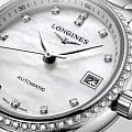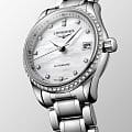 Женские швейцарские механические часы с автоподзаводом Longines Master Collection L2.128.0.87.6. Сапфировое стеклоСапфировое стеклоПрочный и надёжный материал из кристалла сапфира синтетического происхождения, характеризующийся особой твёрдостью и устойчивостью к царапинам и повреждениям. устойчивое к появлению царапин, обладающее высокой прозрачностью. Корпус часов изготовлен из нержавеющей стали. БезельБезельВнешний ободок, закрепляющий стекло. В спортивных часах так называется поворотное кольцо с делениями на циферблате, выполняет роль таймера – замеряет отрезки времени на шкале. Неподвижный безель – элемент декора. Однонаправленно вращающийся безель на дайверских часах позволяет фиксировать моменты погружения и выныривания на поверхность. украшен бриллиантами. Циферблат инкрустирован 12 бриллиантами 0,41 карата. Окошко даты в положении 3 часов. Прозрачная задняя крышка. Класс водозащиты: 30 метров, позволит защитить корпус от случайных брызг или капель дождя. Стальной браслет на застёжке «бабочка» с кнопкамиЗастёжка "бабочка"Такой вид застёжки дополняется предохранителями, помогающими избежать случайного раскрытия браслета. Обладают изящным исполнением. .