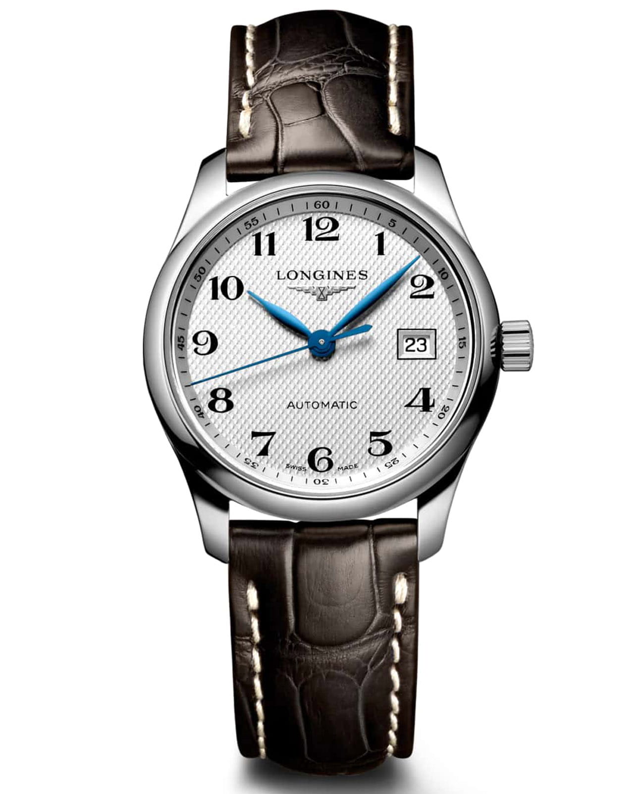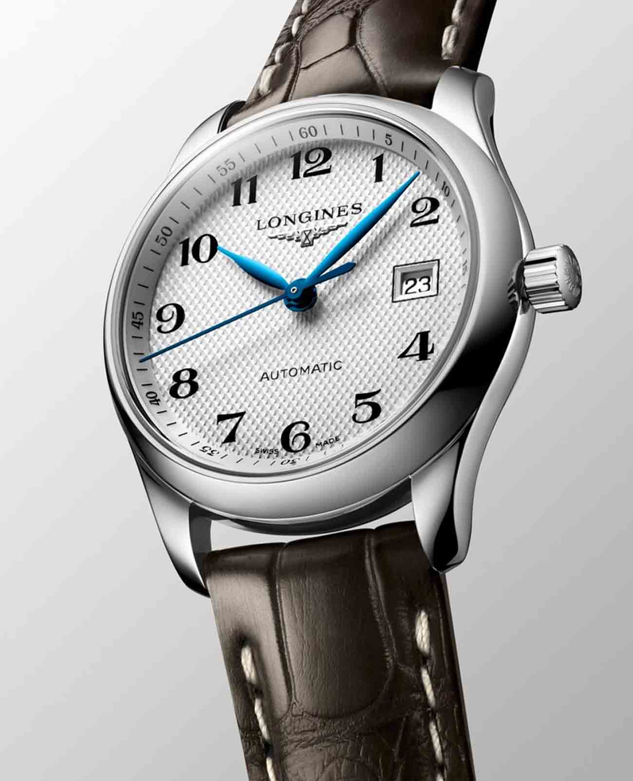 Швейцарские механические часы Longines Master Collection L2.257.4.78.3. Сапфировое стеклоСапфировое стеклоПрочный и надёжный материал из кристалла сапфира синтетического происхождения, характеризующийся особой твёрдостью и устойчивостью к царапинам и повреждениям. устойчивое к появлению царапин, обладающее высокой прозрачностью. Корпус часов изготовлен из нержавеющей стали. Окошко даты в положении 3 часа. Автоматический механизм с частотой баланса 25 200 полуколебаний в час и запасом хода, которого хватает примерно на 72 часа работы. Класс водозащиты: 30 метров, позволит защитить корпус от случайных брызг или капель дождя. Ремешок из кожи аллигатора на застёжке «бабочка» с кнопкамиЗастёжка "бабочка"Такой вид застёжки дополняется предохранителями, помогающими избежать случайного раскрытия браслета. Обладают изящным исполнением. .