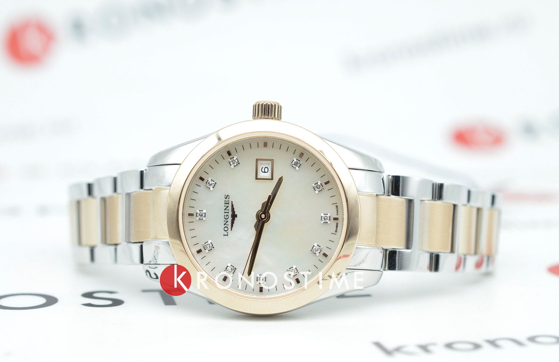 Женские швейцарские часы Longines Conquest Classic L2.286.3.87.7 — это изысканный аксессуар, способный подчеркнуть ваш безупречный вкус и деловой стиль. Модель с белым перламутровым циферблатом, выполненным из высококачественной нержавеющей стали 316L с элегантным безелемБезельВнешний ободок, закрепляющий стекло. В спортивных часах так называется поворотное кольцо с делениями на циферблате, выполняет роль таймера – замеряет отрезки времени на шкале. Неподвижный безель – элемент декора. Однонаправленно вращающийся безель на дайверских часах позволяет фиксировать моменты погружения и выныривания на поверхность. с розово-золотистым PVD-покрытиемPVDУльтратонкое покрытие наносится в технике вакуумного напыления, сочетает в себе нитрид титана особой прочности со слоем золота или оксида хрома. Несёт в себе декоративную или защитную функцию., обладает исключительной устойчивостью к деформации и повреждениям. Циферблат украшен 11 бриллиантами общей массой 0.055 карата, придающими часам особое очарование и блеск. Швейцарский кварцевый калибр L152 обеспечивает безупречную точность хода, а многослойное сапфировое стеклоСапфировое стеклоПрочный и надёжный материал из кристалла сапфира синтетического происхождения, характеризующийся особой твёрдостью и устойчивостью к царапинам и повреждениям. с антибликовым покрытиемАнтибликовое покрытиеСлой оксида металла в 0,13-0,3 микрон, благодаря которому стекло часов не бликует и не отражает свет. Антибликовое покрытие уменьшает отражение света в 10 раз, обеспечивая отличную читаемость показателей циферблата. защищает циферблат от царапин и повреждений, сохраняя его первозданный вид на долгие годы. Среди множества полезных функций этих часов вы найдете отображение даты и EOLEOLПредставляет собой систему, уведомляющую владельца часов о необходимости замены элемента питания. За 2 недели до полного разряда батарейки секундная стрелка перестаёт ходить чётко и начинает перепрыгивать на 3-4 деления., что делает их не только стильным украшением, но и практичным инструментом для повседневного использования. Стальной браслет с розово-золотистым IP-покрытиемIP-покрытиеМетод ионного напыления. Демонстрирует повышенную устойчивость к истиранию, окислению и химическим веществам. Под воздействием высокого давления и температуры около 1500°C молекулы металла надёжно соединяются с частицами корпуса часов. и с удобной застежкой «бабочка»Застёжка "бабочка"Такой вид застёжки дополняется предохранителями, помогающими избежать случайного раскрытия браслета. Обладают изящным исполнением. обеспечивает комфортную посадку на запястье.