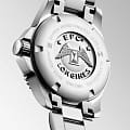 Швейцарские часы для дайвинга Longines HydroConquest L3.370.4.87.6, кварцевый механизм с высокой точностью. Сапфировое стеклоСапфировое стеклоПрочный и надёжный материал из кристалла сапфира синтетического происхождения, характеризующийся особой твёрдостью и устойчивостью к царапинам и повреждениям. с многослойным антибликовым покрытием с обеих сторон, устойчивое к появлению царапин, обладающее высокой прозрачностью. Корпус часов изготовлен из стали. Вращающийся безельБезельВнешний ободок, закрепляющий стекло. В спортивных часах так называется поворотное кольцо с делениями на циферблате, выполняет роль таймера – замеряет отрезки времени на шкале. Неподвижный безель – элемент декора. Однонаправленно вращающийся безель на дайверских часах позволяет фиксировать моменты погружения и выныривания на поверхность. из стали и керамики, защищенный от царапин, никогда не изнашивается и не выцветает. Циферблат с 11 бриллиантами группы Top Wesselton VS-SI общим весом 0.044 карата. Стрелки и метки с люминесцентным покрытиемЛюминесцентное покрытиеПозволяет считывать показания времени в темноте. Производители наносят на стрелки, часовые индексы, безель или поверхность циферблата светонакопительный состав, дающий холодное свечение.. Окошко даты находится в положении 3 часов. Класс водозащиты: 300 метров, позволит плавать, нырять и заниматься другими водными видами спорта. Стальной на раскладной застёжкеРаскладная застёжкаТакой тип застёжки используется только на браслетах из металла. Она никогда не раскрывается полностью, происходит разделение на 2 и более частей. Раскладывающая застёжка снизит вероятность потери часов к минимуму..
