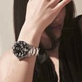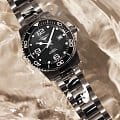 Швейцарские механические часы для дайвинга Longines HydroConquest L3.780.4.56.6. Сапфировое стеклоСапфировое стеклоПрочный и надёжный материал из кристалла сапфира синтетического происхождения, характеризующийся особой твёрдостью и устойчивостью к царапинам и повреждениям. с многослойным антибликовым покрытием с обеих сторон, устойчивое к появлению царапин, обладающее высокой прозрачностью. Корпус часов изготовлен из стали. Вращающийся безельБезельВнешний ободок, закрепляющий стекло. В спортивных часах так называется поворотное кольцо с делениями на циферблате, выполняет роль таймера – замеряет отрезки времени на шкале. Неподвижный безель – элемент декора. Однонаправленно вращающийся безель на дайверских часах позволяет фиксировать моменты погружения и выныривания на поверхность. из стали и керамики, защищенный от царапин, никогда не изнашивается и не выцветает. Стрелки и метки с люминесцентным покрытиемЛюминесцентное покрытиеПозволяет считывать показания времени в темноте. Производители наносят на стрелки, часовые индексы, безель или поверхность циферблата светонакопительный состав, дающий холодное свечение.. Окошко даты находится в положении 3 часов. Класс водозащиты: 300 метров, позволит плавать, нырять и заниматься другими водными видами спорта. Стальной браслет на раскладной застёжкеРаскладная застёжкаТакой тип застёжки используется только на браслетах из металла. Она никогда не раскрывается полностью, происходит разделение на 2 и более частей. Раскладывающая застёжка снизит вероятность потери часов к минимуму..