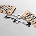 Стальной браслет с частичным PVD-покрытиемPVDУльтратонкое покрытие наносится в технике вакуумного напыления, сочетает в себе нитрид титана особой прочности со слоем золота или оксида хрома. Несёт в себе декоративную или защитную функцию. и элегантной застёжкой-бабочка с кнопкамиЗастёжка "бабочка"Такой вид застёжки дополняется предохранителями, помогающими избежать случайного раскрытия браслета. Обладают изящным исполнением. обеспечивает комфортное ношение и стильный внешний вид. Эти часы станут идеальным дополнением к любому образу, подчеркивая изысканный вкус своей владелицы.