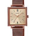 Японские женские часы Casio Collection LTP-E155MR-9B из коллекции Casio LTP изящно обрамляют запястье и добротно смотрятся с любым образом. Элегантный дизайн часов выдержан в стиле винтаж. Прочный квадратный корпус из нержавеющей стали надежно закреплен с изящным браслетом миланского плетения. На циферблате золотистого цвета аккуратно расположены временные отметки в виде штрихов и римских цифр. Защита часов обеспечивается прочным минеральным стеклом. Потеря аксессуара сведена к минимуму благодаря регулируемому креплению. На изделие нанесено защитное IP-покрытиеIP-покрытиеМетод ионного напыления. Демонстрирует повышенную устойчивость к истиранию, окислению и химическим веществам. Под воздействием высокого давления и температуры около 1500°C молекулы металла надёжно соединяются с частицами корпуса часов.. Тип механизма - кварцевый. Срок службы батарейки - 3 года.