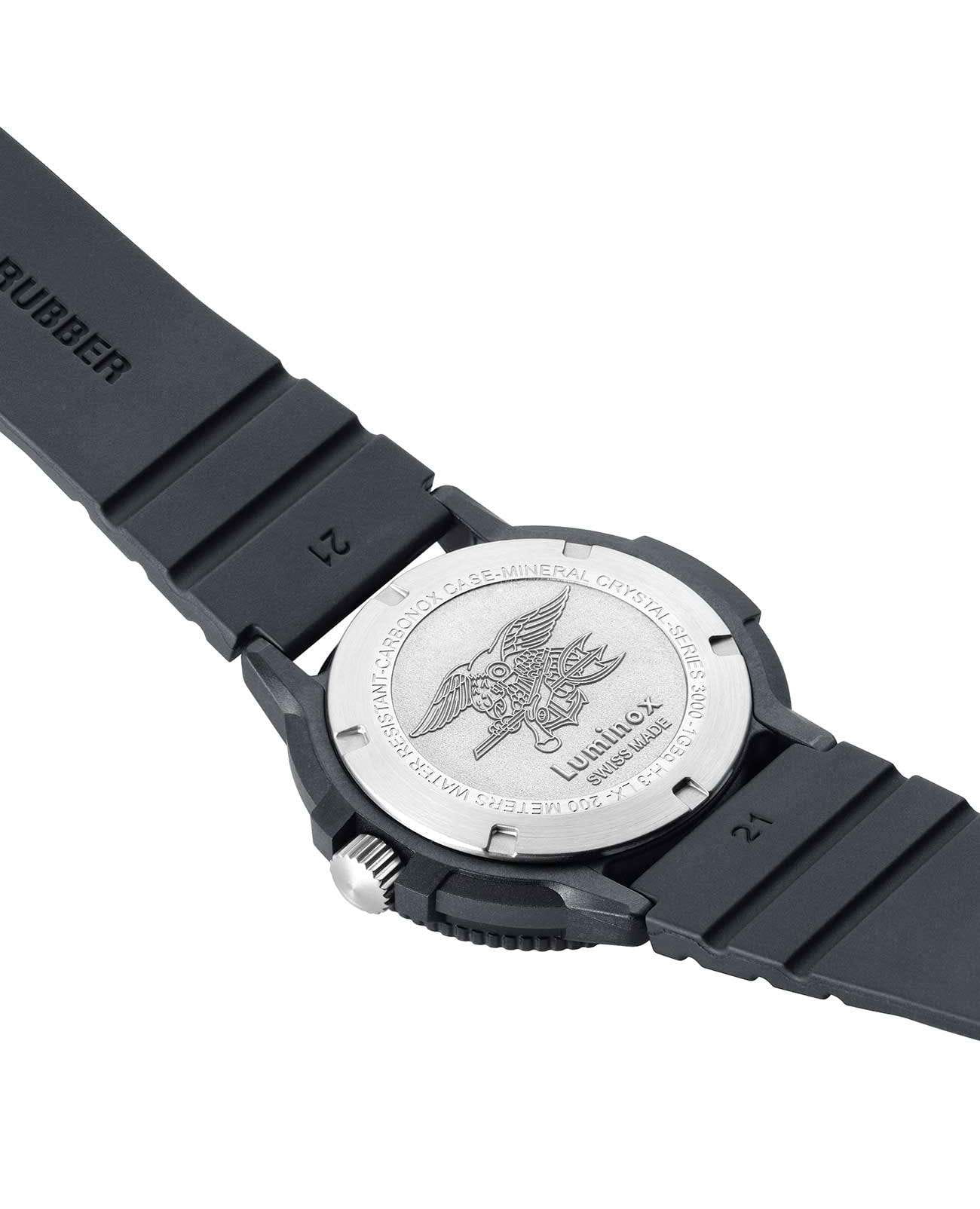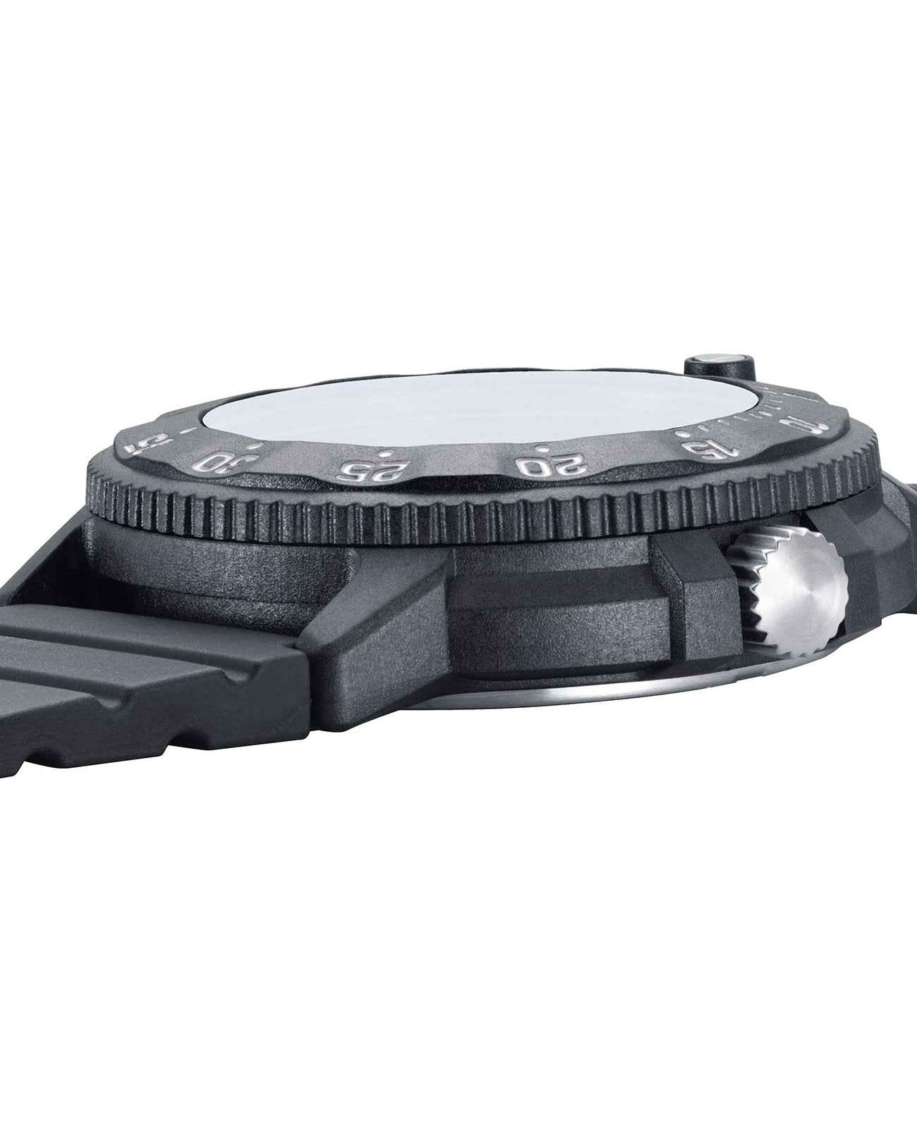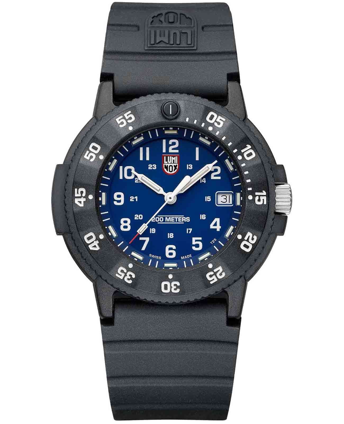 Мужские наручные часы Luminox XS.3003.EVO.S из коллекции Original Navy SEAL сочетают в себе спортивный дизайн и надежность швейцарского качества. Модель обладает круглым корпусом диаметром 43 мм, изготовленным из карбонаКарбонОт «carbon», «carbone» - углерод, углепластик - полимерный композиционный материал из переплетённых под определенным углом между собой нитей углеродного волокна, применяется для изготовления лёгких, но прочных деталей. В часах часто используют для украшения циферблатов и ремешков. Так же карбон используется в изготовлении корпусов. Такие корпуса обладают антикоррозионным свойством, не поддаются электромагнитному излучению, обладают повышенной прочностью и противоударностью., что обеспечивает высокую устойчивость к внешним воздействиям при сохранении легкости. Циферблат синего цвета украшен контрастными метками и стрелками с , гарантирующим постоянную видимость времени даже в условиях низкой освещенности. Часы оснащены кварцевым механизмом швейцарского производства, обеспечивающим точность хода ±15 секунд в месяц. Защиту циферблата обеспечивает прочное минеральное стеклоМинеральное стеклоМинеральное стекло представляет собой искусственно выращенный минерал кварца. Такое стекло отличается особой устойчивостью к повреждениям и царапинам. Уступает по некоторым качествам сапфировому стеклу. с антибликовым покрытиемАнтибликовое покрытиеСлой оксида металла в 0,13-0,3 микрон, благодаря которому стекло часов не бликует и не отражает свет. Антибликовое покрытие уменьшает отражение света в 10 раз, обеспечивая отличную читаемость показателей циферблата., устойчивое к царапинам и механическим повреждениям. Водонепроницаемость модели достигает 20 атмосфер (200 метров), что делает их подходящими для плавания и активного отдыха на воде, включая дайвинг. Модель также оснащена безелемБезельВнешний ободок, закрепляющий стекло. В спортивных часах так называется поворотное кольцо с делениями на циферблате, выполняет роль таймера – замеряет отрезки времени на шкале. Неподвижный безель – элемент декора. Однонаправленно вращающийся безель на дайверских часах позволяет фиксировать моменты погружения и выныривания на поверхность. с односторонним вращением, что добавляет функциональности при использовании в водных условиях. Ремешок выполнен из полиуретана, что обеспечивает комфортное ношение в течение дня. Дополнительно часы имеют окно даты в положении «3 часа», что делает их практичными для повседневного использования.
