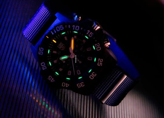 Часы Luminox XS.3583.ND представляют собой надежные и функциональные швейцарские часы, идеально подходящие для активных мужчин, стремящихся к новым достижениям. Они оснащены кварцевым механизмом и выполнены в корпусе из пластика, усиленного прессованным карбоном, что делает их легкими и прочными. Синий циферблат часов защищен минеральным стекломМинеральное стеклоМинеральное стекло представляет собой искусственно выращенный минерал кварца. Такое стекло отличается особой устойчивостью к повреждениям и царапинам. Уступает по некоторым качествам сапфировому стеклу. повышенной прочности, способным выдерживать значительные нагрузки и сохраняя его в первозданном виде. Часы-хронографХронографФункция позволяет измерять отрезки времени с особой точностью: часы, минуты, секунды. Верным признаком хронографа является наличие на циферблате 3 дополнительных окошек-счётчиков. обладают функцией секундомераСекундомерСекундоме́р — прибор, способный измерять интервалы времени с точностью до долей секунды. и поддерживают 12- и 24-часовой формат времени, что делает их практичными в использовании. БезельБезельВнешний ободок, закрепляющий стекло. В спортивных часах так называется поворотное кольцо с делениями на циферблате, выполняет роль таймера – замеряет отрезки времени на шкале. Неподвижный безель – элемент декора. Однонаправленно вращающийся безель на дайверских часах позволяет фиксировать моменты погружения и выныривания на поверхность., который вращается в одном направлении, снабжен светящейся меткой на 12 часов, обеспечивая удобство и точность в любых условиях. Технология LLTLLTLLT — это автономный механизм подсветки, основанный на использовании микроскопических газонаполненных элементов. Специальные герметичные капсулы из боросиликатного стекла, интегрированные в циферблат, генерируют свечение без необходимости подключения к внешним источникам энергии. Для их работы не требуется ни дополнительный свет, ни механическое воздействие (например, нажатие кнопки). Свечение возникает благодаря химическому процессу: реакция между тритием, заключенным в капсулах, и люминофорным покрытием создает стабильное автономное освещение. Технология обеспечивает энергетическую независимость и долговечность подсветки.-подсветки, использующая тритий, гарантирует превосходную видимость в полной темноте и будет служить надежным помощником в течение 25 лет. С водозащитой до 200 метров эти часы подходят для водных видов спорта и активных приключений. Завинчивающаяся задняя крышка и защищенная заводная головка обеспечивают дополнительную герметичность и долговечность часов. Нейлоновый синий ремешок с классической стальной застежкой обеспечивает комфортное и надежное ношение, а календарь с указателем числа добавляет практичности.