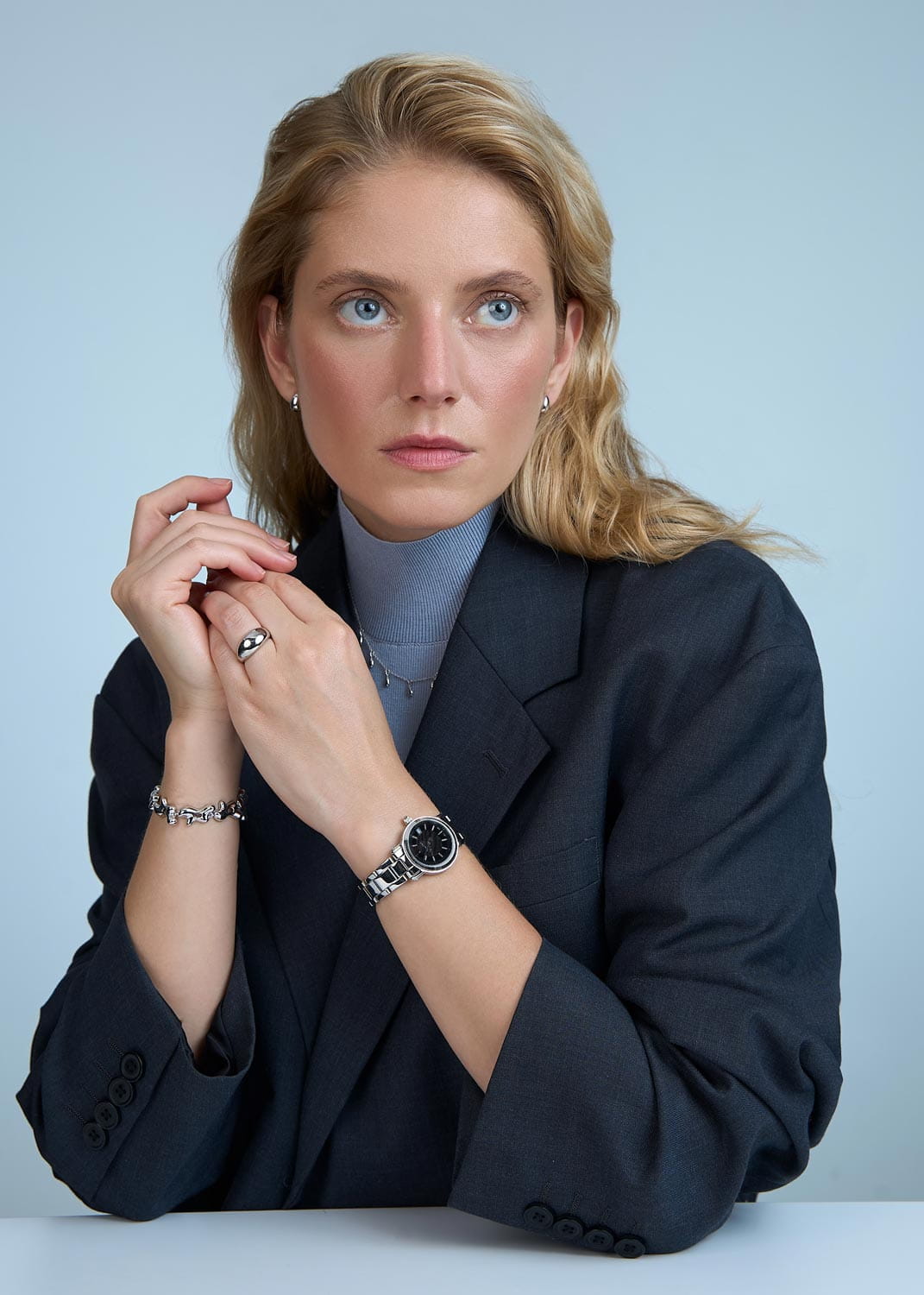 Женские кварцевые часы Mathey-Tissot City Metal D31186MAN — это стильное сочетание элегантности и современного дизайна. Изящный корпус выполнен из нержавеющей стали 316L серебристого цвета, что придаст образу женственности и романтизма. Изысканный циферблат с метками в виде штрихов придает модели особый блеск. Циферблат защищен минеральным стекломМинеральное стеклоМинеральное стекло представляет собой искусственно выращенный минерал кварца. Такое стекло отличается особой устойчивостью к повреждениям и царапинам. Уступает по некоторым качествам сапфировому стеклу., обеспечивающий устойчивость к царапинам. Окошко даты находится в положении 3 часа. Часы оснащены надежным кварцевым механизмом. Стальной браслет на раскладной застёжкеРаскладная застёжкаТакой тип застёжки используется только на браслетах из металла. Она никогда не раскрывается полностью, происходит разделение на 2 и более частей. Раскладывающая застёжка снизит вероятность потери часов к минимуму., гарантирует комфортное и безопасное ношение. Класс водозащиты: 50 метров позволит защитить корпус от случайных брызг или капель дождя. Mathey-Tissot  — отличный выбор для тех, кто ценит утонченность и качество.