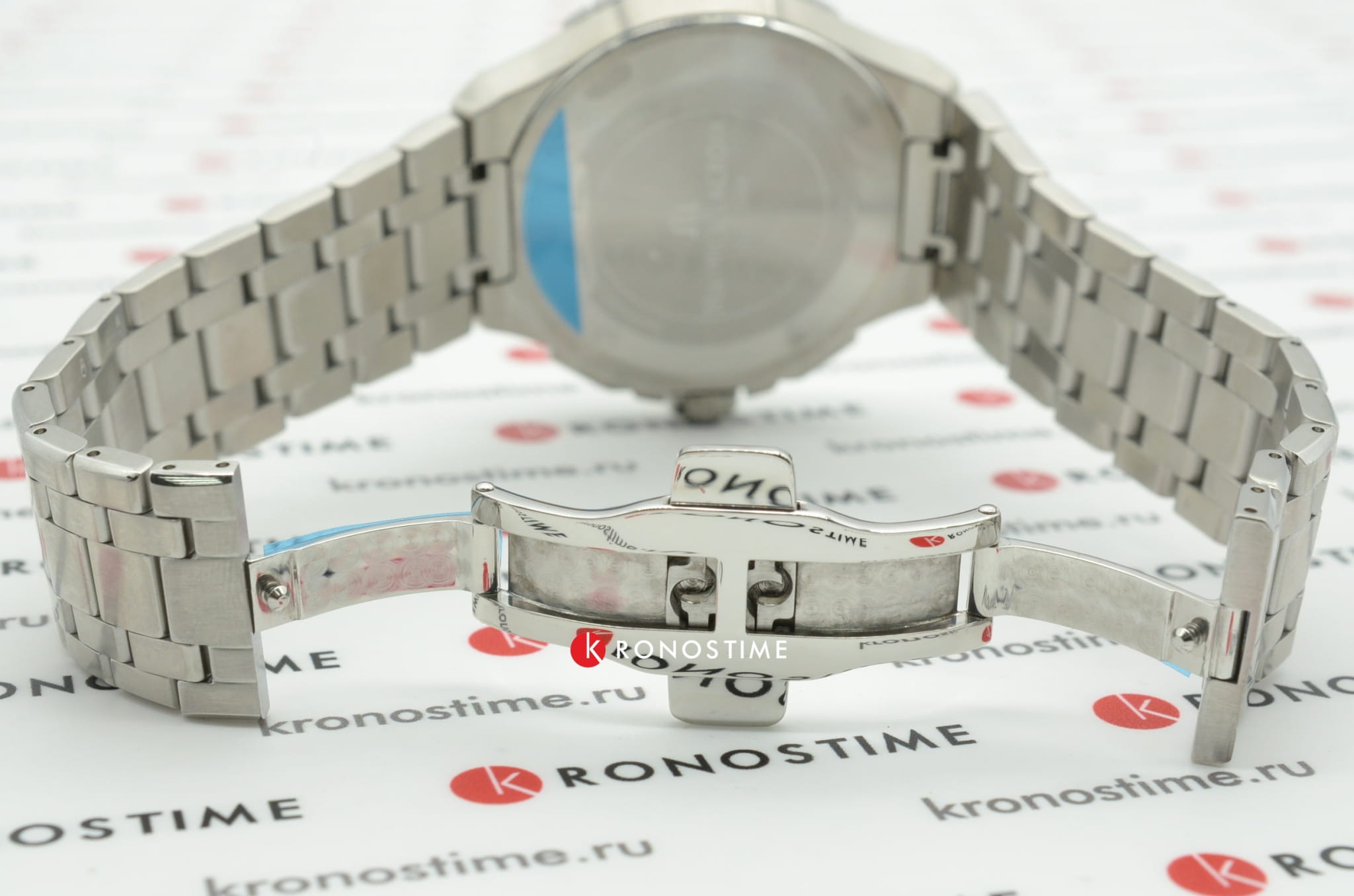 Мужские швейцарские часы с хронографом Maurice Lacroix Aikon Chronograph AI1018-SS002-430-1, кварцевый механизм с высокой точностью. Сапфировое стеклоСапфировое стеклоПрочный и надёжный материал из кристалла сапфира синтетического происхождения, характеризующийся особой твёрдостью и устойчивостью к царапинам и повреждениям. устойчивое к появлению царапин, обладающее высокой прозрачностью. Класс водозащиты: 100 метров, позволит плавать, нырять и заниматься другими водными видами спорта. Корпус и браслет часов изготовлены из нержавеющей стали. На циферблате расположены три дополнительных индикатора. Стрелки с люминесцентным покрытиемЛюминесцентное покрытиеПозволяет считывать показания времени в темноте. Производители наносят на стрелки, часовые индексы, безель или поверхность циферблата светонакопительный состав, дающий холодное свечение.. Стальной браслет на застёжке-бабочке с кнопкамиЗастёжка "бабочка"Такой вид застёжки дополняется предохранителями, помогающими избежать случайного раскрытия браслета. Обладают изящным исполнением. .