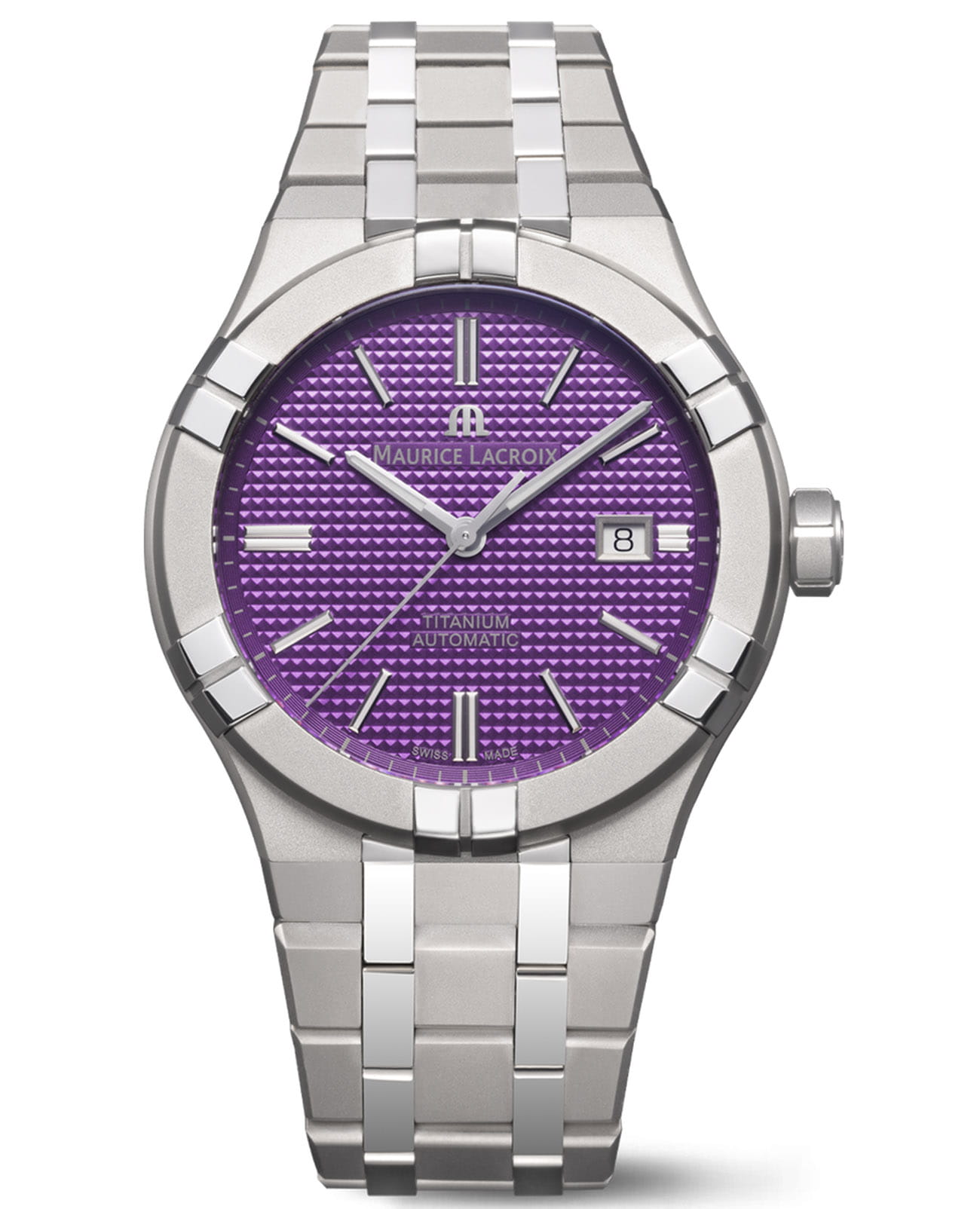 Женские кварцевые часы Maurice Lacroix Aikon Automatic Titanium AI6008-TT032-430-1. Корпус часов изготовлен из титана. Сапфировое стеклоСапфировое стеклоПрочный и надёжный материал из кристалла сапфира синтетического происхождения, характеризующийся особой твёрдостью и устойчивостью к царапинам и повреждениям. устойчивое к появлению царапин, обладающее высокой прозрачностью. Класс водозащиты: 200 метров, позволит плавать, нырять и заниматься другими водными видами спорта. Стрелки с люминесцентным покрытиемЛюминесцентное покрытиеПозволяет считывать показания времени в темноте. Производители наносят на стрелки, часовые индексы, безель или поверхность циферблата светонакопительный состав, дающий холодное свечение.. Титановый браслет на раскладной застёжкеРаскладная застёжкаТакой тип застёжки используется только на браслетах из металла. Она никогда не раскрывается полностью, происходит разделение на 2 и более частей. Раскладывающая застёжка снизит вероятность потери часов к минимуму.. Окошко даты в положении 3 часа.