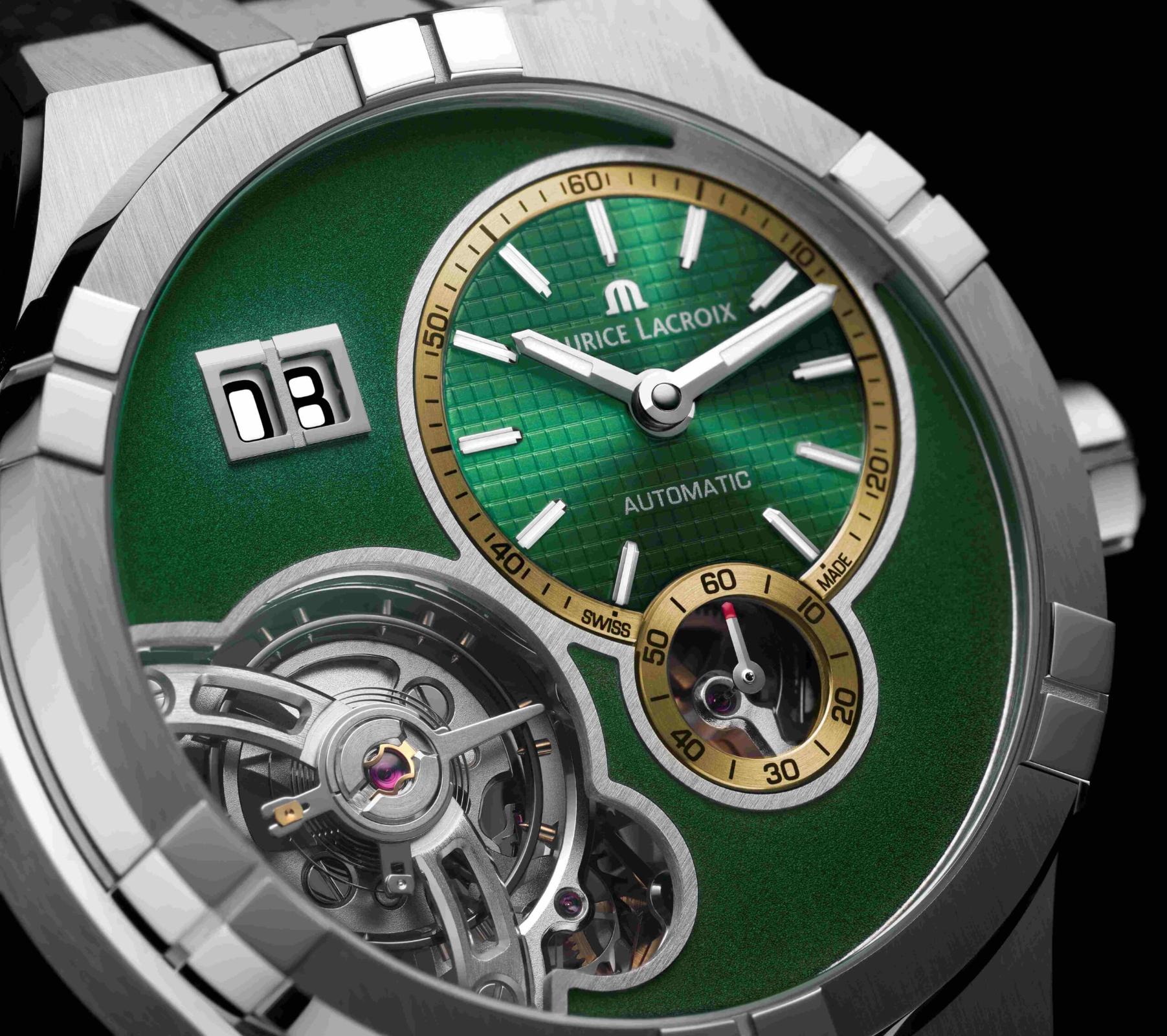 Ограниченная серия из 5 экземпляров, Maurice Lacroix AI6118-SS00B-630-5 представляет свою последнюю коллаборацию с Arizona Fine Time — красивые часы Aikon Grand Date зеленого цвета с золотыми акцентами. Это произведение доступно исключительно в Arizona Fine Time. Мужские часы AI6098-SS002-090-1 с хронографомХронографФункция позволяет измерять отрезки времени с особой точностью: часы, минуты, секунды. Верным признаком хронографа является наличие на циферблате 3 дополнительных окошек-счётчиков.. Автоматический механизм с высокой точностью. Сапфировое стеклоСапфировое стеклоПрочный и надёжный материал из кристалла сапфира синтетического происхождения, характеризующийся особой твёрдостью и устойчивостью к царапинам и повреждениям. устойчивое к появлению царапин, обладающее высокой прозрачностью. Стрелки с люминесцентным покрытиемЛюминесцентное покрытиеПозволяет считывать показания времени в темноте. Производители наносят на стрелки, часовые индексы, безель или поверхность циферблата светонакопительный состав, дающий холодное свечение.. Класс водозащиты: 100 метров, позволит плавать, нырять и заниматься другими водными видами спорта. Корпус часов изготовлен из стали. Силиконовый ремешок на стандартной застёжке.В комплекте 2 ремешка.