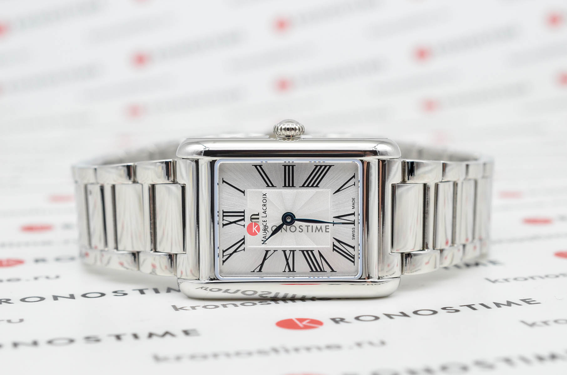 Швейцарские женские кварцевые часы Maurice Lacroix FA1205-SS002-110-1 оснащены корпусом из нержавеющей стали с PVD-покрытиемPVDУльтратонкое покрытие наносится в технике вакуумного напыления, сочетает в себе нитрид титана особой прочности со слоем золота или оксида хрома. Несёт в себе декоративную или защитную функцию. размером 24 мм х 34 мм и защищены сапфировым стекломСапфировое стеклоПрочный и надёжный материал из кристалла сапфира синтетического происхождения, характеризующийся особой твёрдостью и устойчивостью к царапинам и повреждениям., устойчивым к мелким механическим повреждениям. Серебряный циферблат украшен часовыми индексами в виде цифр и стрелками, обеспечивающими функции отображения часов и минут. Часы имеют водонепроницаемость 50 метров, позволит защитить корпус от случайных брызг или капель дождя. Модель комплектуется браслетом из нержавеющей стали на раскладном замкеРаскладной замокДанный вариант застежки используется только на часах с металлическим браслетом. Отличительная особенность такого крепления в том, что длина браслета становится универсальной и вы можете самостоятельно отрегулировать нужный вам размер – застежка просто двигается по браслету часов.. Прочный корпус и надежный механизм гарантируют точность хода и долговечность использования. Дизайн и производство часов выполнены в Швейцарии, что подтверждает их высокое качество. Международная гарантия 2 года обеспечивает уверенность в надежности модели. Эти часы сочетают в себе элегантный дизайн и практичность, делая их универсальным аксессуаром для повседневного использования.