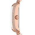 Женские американские наручные часы с минеральным стекломМинеральное стеклоМинеральное стекло представляет собой искусственно выращенный минерал кварца. Такое стекло отличается особой устойчивостью к повреждениям и царапинам. Уступает по некоторым качествам сапфировому стеклу. Michael Kors Emery MK4641, кварцевый механизм с высокой точностью. Минеральное стеклоМинеральное стеклоМинеральное стекло представляет собой искусственно выращенный минерал кварца. Такое стекло отличается особой устойчивостью к повреждениям и царапинам. Уступает по некоторым качествам сапфировому стеклу. устойчивое к появлению царапин, обладающее высокой прозрачностью. Корпус и браслет часов изготовлены из нержавеющей стали с PVD-покрытиемPVDУльтратонкое покрытие наносится в технике вакуумного напыления, сочетает в себе нитрид титана особой прочности со слоем золота или оксида хрома. Несёт в себе декоративную или защитную функцию.. БезельБезельВнешний ободок, закрепляющий стекло. В спортивных часах так называется поворотное кольцо с делениями на циферблате, выполняет роль таймера – замеряет отрезки времени на шкале. Неподвижный безель – элемент декора. Однонаправленно вращающийся безель на дайверских часах позволяет фиксировать моменты погружения и выныривания на поверхность. из нержавеющей стали украшен кристаллами. Класс водозащиты: 50 метров, позволит защитить корпус от случайных брызг или капель дождя. Стальной браслет на раскладной застёжкеРаскладная застёжкаТакой тип застёжки используется только на браслетах из металла. Она никогда не раскрывается полностью, происходит разделение на 2 и более частей. Раскладывающая застёжка снизит вероятность потери часов к минимуму..