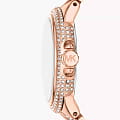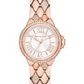 Женские американские часы с минеральным стекломМинеральное стеклоМинеральное стекло представляет собой искусственно выращенный минерал кварца. Такое стекло отличается особой устойчивостью к повреждениям и царапинам. Уступает по некоторым качествам сапфировому стеклу. Michael Kors Camille MK4810, кварцевый механизм с высокой точностью. Корпус часов изготовлен из стали с PVD-покрытиемPVDУльтратонкое покрытие наносится в технике вакуумного напыления, сочетает в себе нитрид титана особой прочности со слоем золота или оксида хрома. Несёт в себе декоративную или защитную функцию.. Браслет и безельБезельВнешний ободок, закрепляющий стекло. В спортивных часах так называется поворотное кольцо с делениями на циферблате, выполняет роль таймера – замеряет отрезки времени на шкале. Неподвижный безель – элемент декора. Однонаправленно вращающийся безель на дайверских часах позволяет фиксировать моменты погружения и выныривания на поверхность. украшены кристаллами. Метки в виде штрихов и римских цифр. Заводная головка с защитой. Класс водозащиты: 50 метров, позволит защитить корпус от случайных брызг или капель дождя. Стальной браслет с PVD-покрытиемPVDУльтратонкое покрытие наносится в технике вакуумного напыления, сочетает в себе нитрид титана особой прочности со слоем золота или оксида хрома. Несёт в себе декоративную или защитную функцию. на застёжке-бабочке с кнопкамиЗастёжка "бабочка"Такой вид застёжки дополняется предохранителями, помогающими избежать случайного раскрытия браслета. Обладают изящным исполнением. .