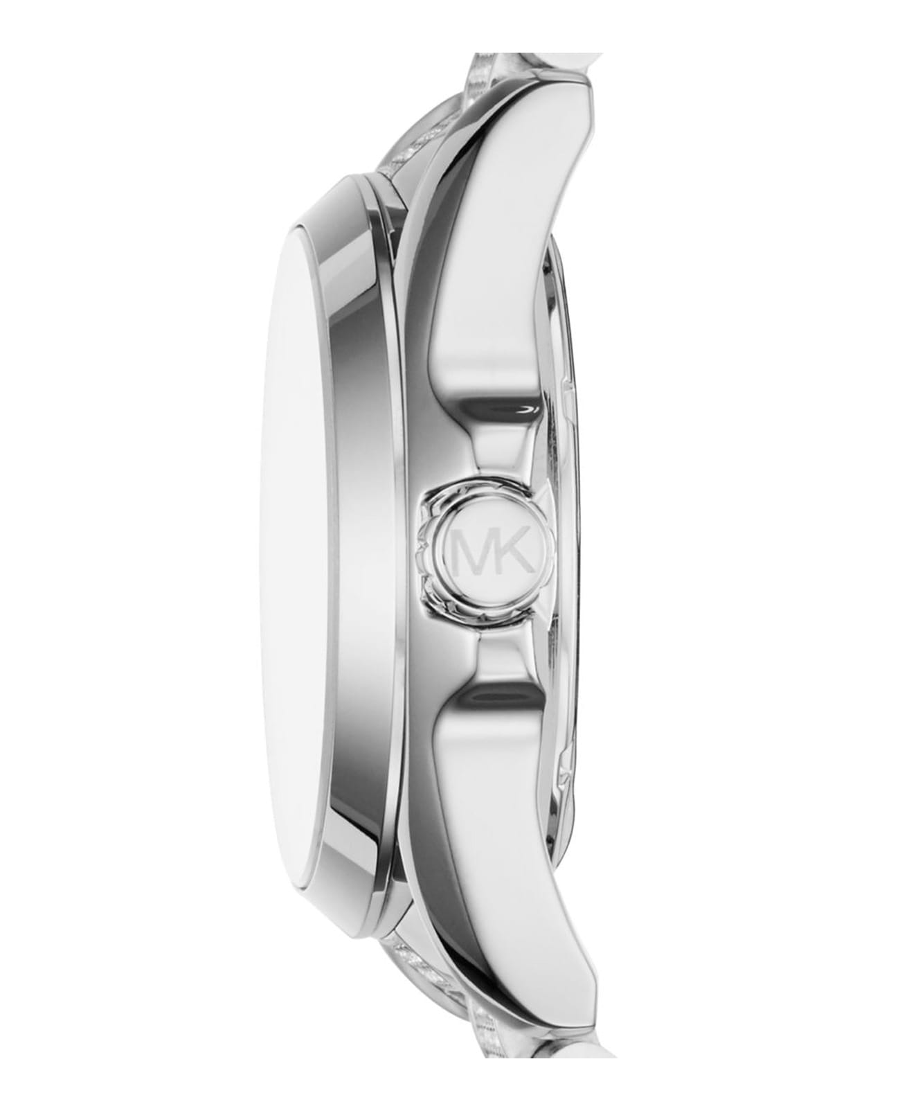 Женские американские часы с минеральным стекломМинеральное стеклоМинеральное стекло представляет собой искусственно выращенный минерал кварца. Такое стекло отличается особой устойчивостью к повреждениям и царапинам. Уступает по некоторым качествам сапфировому стеклу. Michael Kors Bradshaw MK6486, кварцевый механизм с высокой точностью. Корпус часов изготовлен из стали. Циферблат украшен кристаллами. Класс водозащиты: 100 метров, позволит плавать, нырять и заниматься другими водными видами спорта. Стальной браслет на раскладной застёжкеРаскладная застёжкаТакой тип застёжки используется только на браслетах из металла. Она никогда не раскрывается полностью, происходит разделение на 2 и более частей. Раскладывающая застёжка снизит вероятность потери часов к минимуму..