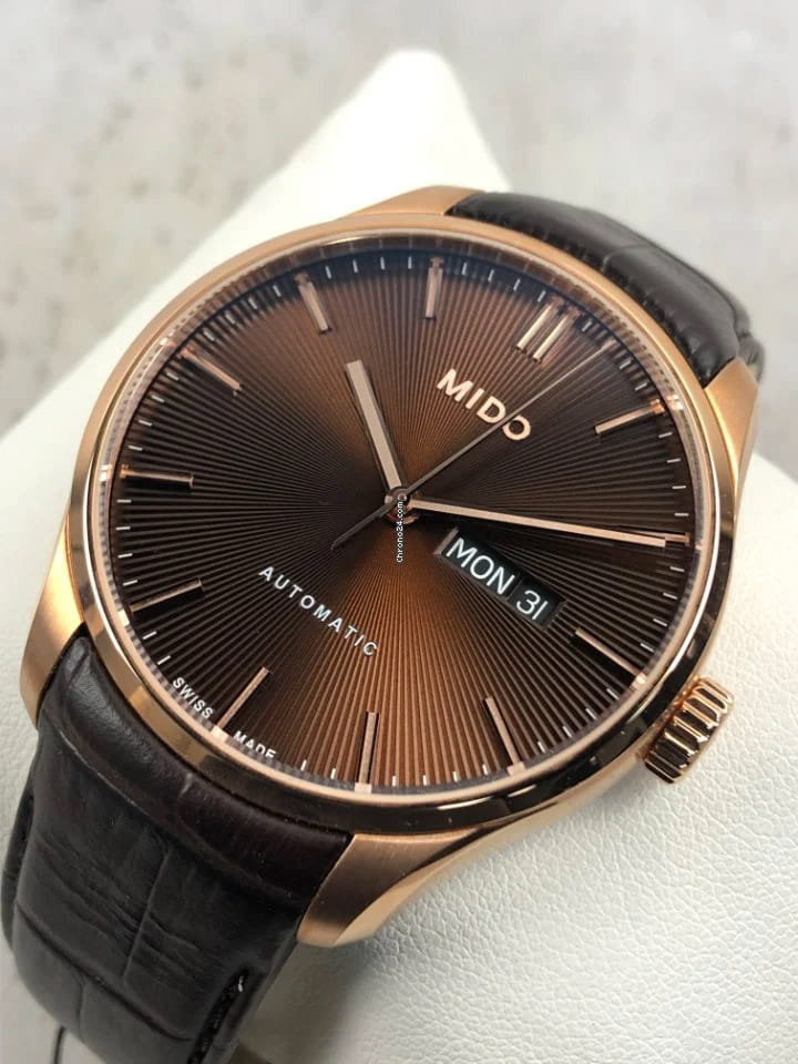 Дизайн модели - результат работы часовщиков, вдохновленных стеклянным куполом лондонского Альберт-холла. Мужские швейцарские механические часы с автоподзаводом Mido Belluna Sunray M024.630.36.291.00, механический механизм (автоматический калибр) с высокой точностью. Сапфировое стеклоСапфировое стеклоПрочный и надёжный материал из кристалла сапфира синтетического происхождения, характеризующийся особой твёрдостью и устойчивостью к царапинам и повреждениям. устойчивое к появлению царапин, обладающее высокой прозрачностью, двойным антибликовым покрытием. Класс водозащиты: 50 метров, позволит защитить корпус от случайных брызг или капель дождя. Корпус часов изготовлен из стали с PVD-покрытиемPVDУльтратонкое покрытие наносится в технике вакуумного напыления, сочетает в себе нитрид титана особой прочности со слоем золота или оксида хрома. Несёт в себе декоративную или защитную функцию.. Окошки дня недели и даты находятся в положении 3 часа. Кожаный ремешок на стандартной застёжке. Циферблат с гильоше «солнечные лучи», завинчивающаяся прозрачная задняя крышка.