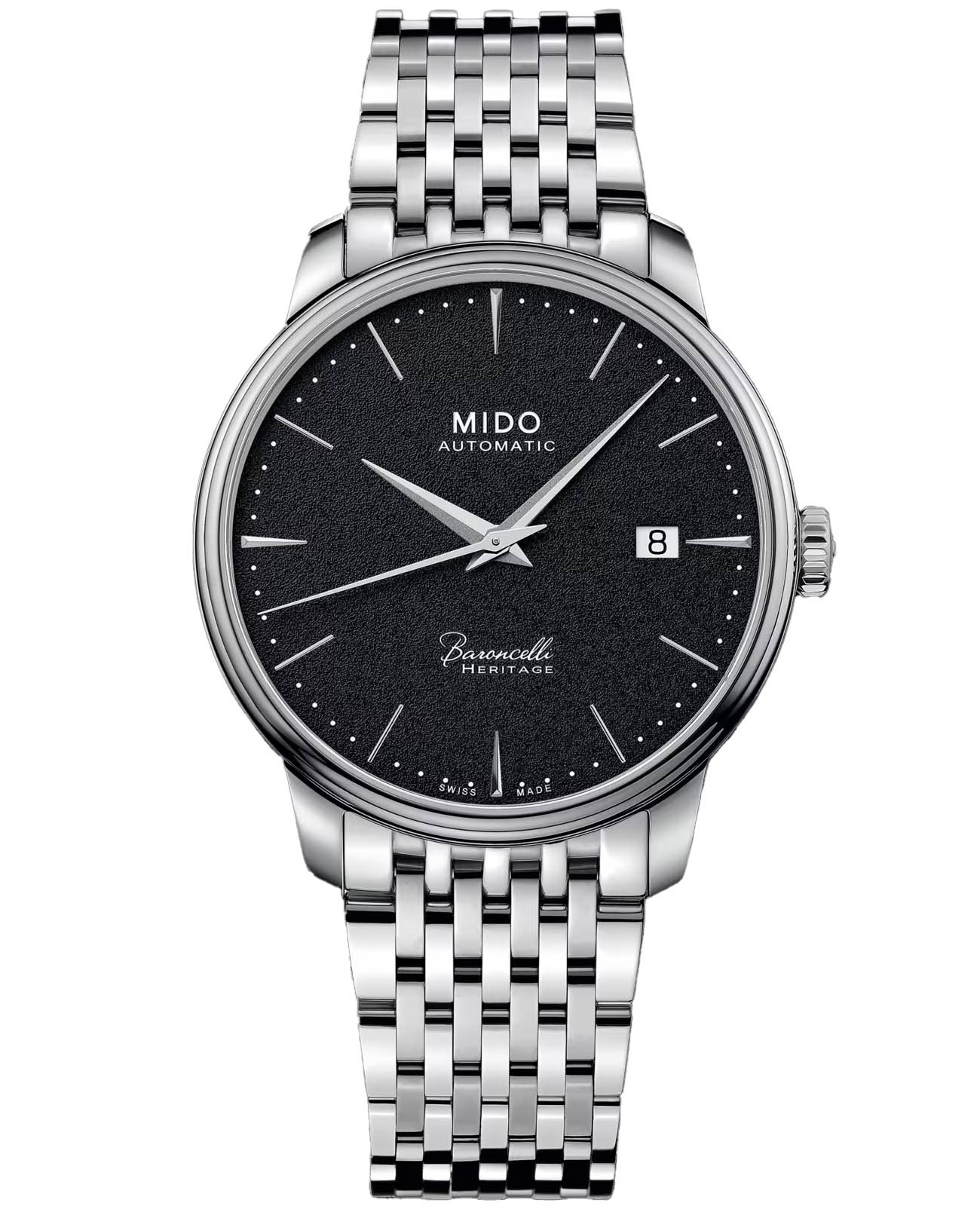 Мужские швейцарские сверхтонкие часы Mido Baroncelli Heritage M027.407.11.051.00, механический механизм (автоматический калибр) с высокой точностью. Сапфировое стеклоСапфировое стеклоПрочный и надёжный материал из кристалла сапфира синтетического происхождения, характеризующийся особой твёрдостью и устойчивостью к царапинам и повреждениям. устойчивое к появлению царапин, обладающее высокой прозрачностью. Класс водозащиты: 30 метров, позволит защитить корпус от случайных брызг или капель дождя. Корпус часов изготовлен из нержавеющей стали. Стальной браслет на раскладной застёжкеРаскладная застёжкаТакой тип застёжки используется только на браслетах из металла. Она никогда не раскрывается полностью, происходит разделение на 2 и более частей. Раскладывающая застёжка снизит вероятность потери часов к минимуму..