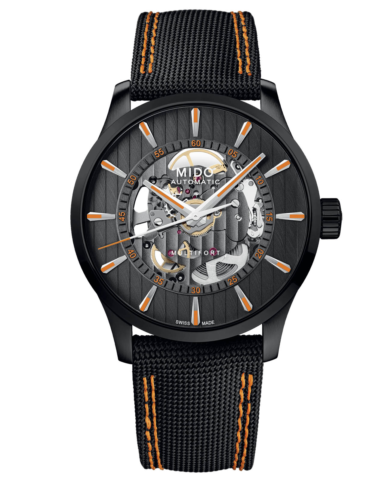 Швейцарские мужские механические часы Mido Multifort Skeleton Vertigo M038.436.37.051.00