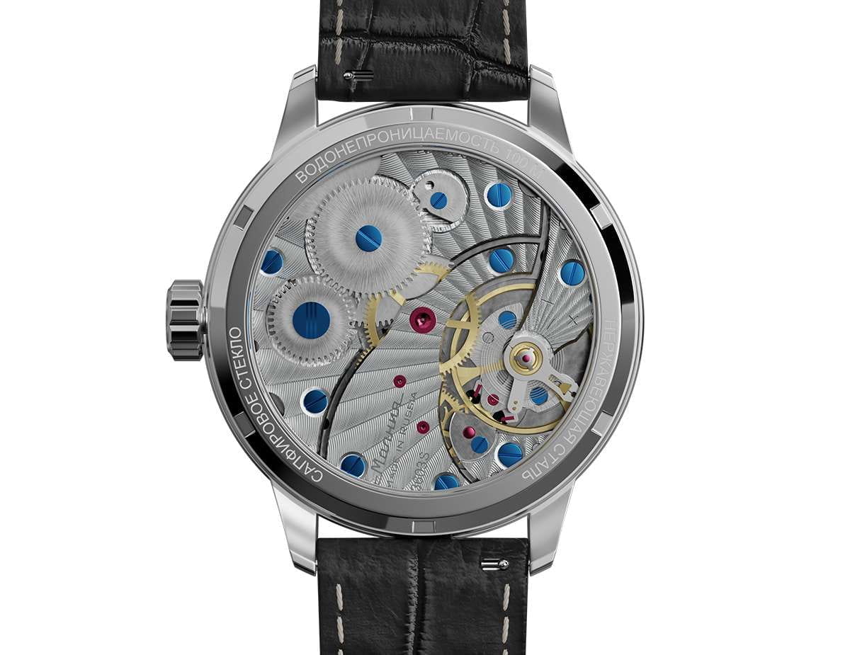 Мужские механические часы с ручным подзаводом — это аксессуар от легендарного бренда «МОЛНИЯ», созданный на Челябинском часовом заводе. Корпус диаметром 41 мм и толщиной 12 мм выполнен из нержавеющей стали 316L с зеркальной полировкой. БезельБезельВнешний ободок, закрепляющий стекло. В спортивных часах так называется поворотное кольцо с делениями на циферблате, выполняет роль таймера – замеряет отрезки времени на шкале. Неподвижный безель – элемент декора. Однонаправленно вращающийся безель на дайверских часах позволяет фиксировать моменты погружения и выныривания на поверхность. также выполнен из стали с зеркальной отделкой. Циферблат белого цвета оформлен римскими цифрами и стальными индексами. Малая секундная стрелка вынесена на позицию 6 часов. Циферблат защищён сапфировым стекломСапфировое стеклоПрочный и надёжный материал из кристалла сапфира синтетического происхождения, характеризующийся особой твёрдостью и устойчивостью к царапинам и повреждениям. толщиной 2,5 мм. Механизм — мануфактурный калибр 3603, собранный вручную, с запасом хода до 40 часов. Прозрачная задняя крышка позволяет наблюдать за работой механизма. Часы оснащены чёрным кожаным ремешком шириной 20 мм с раскладной застёжкойРаскладная застёжкаТакой тип застёжки используется только на браслетах из металла. Она никогда не раскрывается полностью, происходит разделение на 2 и более частей. Раскладывающая застёжка снизит вероятность потери часов к минимуму. и системой быстрой замены. Водонепроницаемость 100 м позволяет использовать часы для плавания и повседневного ношения. Идеальный выбор для тех, кто ценит российское качество и традиции.