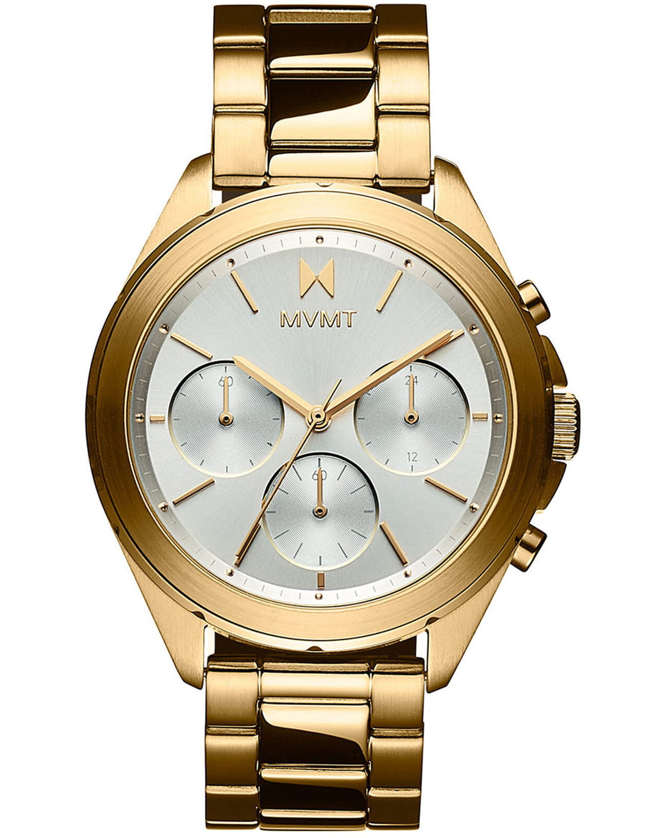 Женские кварцевые часы-хронографХронографФункция позволяет измерять отрезки времени с особой точностью: часы, минуты, секунды. Верным признаком хронографа является наличие на циферблате 3 дополнительных окошек-счётчиков. с секундомеромСекундомерСекундоме́р — прибор, способный измерять интервалы времени с точностью до долей секунды. MVMT 28000128-D – лаконичная красота и изысканная элегантность. Оригинальная модель с классическим оформлением станет превосходным завершением образа, наделив его индивидуальным характером. Корпус выполнен из нержавеющей стали с IP-покрытиемIP-покрытиеМетод ионного напыления. Демонстрирует повышенную устойчивость к истиранию, окислению и химическим веществам. Под воздействием высокого давления и температуры около 1500°C молекулы металла надёжно соединяются с частицами корпуса часов. золотистого цвета, диаметром 39 мм и толщиной 10,4 мм, что обеспечивает долговечность и утончённый внешний вид. Закаленное минеральное стеклоМинеральное стеклоМинеральное стекло представляет собой искусственно выращенный минерал кварца. Такое стекло отличается особой устойчивостью к повреждениям и царапинам. Уступает по некоторым качествам сапфировому стеклу. защищает циферблат от царапин. 12-ти и 24-х часовой формат времени. БезельБезельВнешний ободок, закрепляющий стекло. В спортивных часах так называется поворотное кольцо с делениями на циферблате, выполняет роль таймера – замеряет отрезки времени на шкале. Неподвижный безель – элемент декора. Однонаправленно вращающийся безель на дайверских часах позволяет фиксировать моменты погружения и выныривания на поверхность. декорирован внешним стальным кольцом с насечками. Стальной браслет с IP-покрытиемIP-покрытиеМетод ионного напыления. Демонстрирует повышенную устойчивость к истиранию, окислению и химическим веществам. Под воздействием высокого давления и температуры около 1500°C молекулы металла надёжно соединяются с частицами корпуса часов. на раскладной застежке с фиксаторомРаскладная застёжкаТакой тип застёжки используется только на браслетах из металла. Она никогда не раскрывается полностью, происходит разделение на 2 и более частей. Раскладывающая застёжка снизит вероятность потери часов к минимуму. обеспечивает комфортное ношение. Водозащита 100 метров позволит плавать, нырять и заниматься другими водными видами спорта. Женский аксессуар, который покорит вас своим элегантным дизайном. Эти часы станут изысканным акцентом в вашем образе, подчеркивая вашу утонченность и хороший вкус.