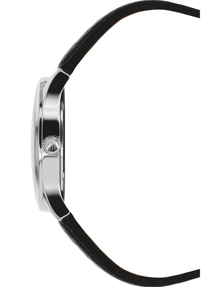 Ремешок выполнен из натуральной кожи чёрного цвета, обеспечивая комфорт при носке. Толщина корпуса составляет 11 мм, что придаёт часам солидный вид.