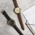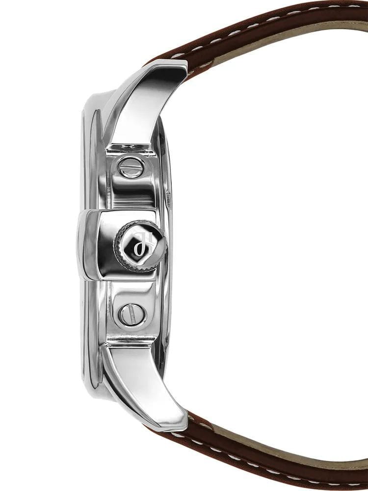 Ремешок выполнен из натуральной кожи коричневого цвета, обеспечивая комфорт при носке. Толщина корпуса составляет 13 мм, что придаёт часам солидный вид.