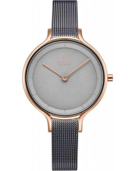 Женские кварцевые часы с точным японским механизмом. Минималистичный дизайн. Светло-серый циферблат. Центральные часовая и минутная стрелки. Круглый корпус выполнен из нержавеющей стали с IP покрытием цвета розового золота. Диаметр корпуса составляет 34 мм, толщина 7 мм. Стальной браслет миланского плетения с IP покрытием серого цвета. Застежка - раскладной замок. Минеральное стекло устойчиво к мелким механическим повреждениям. Водостойкость WR 30 (брызги).