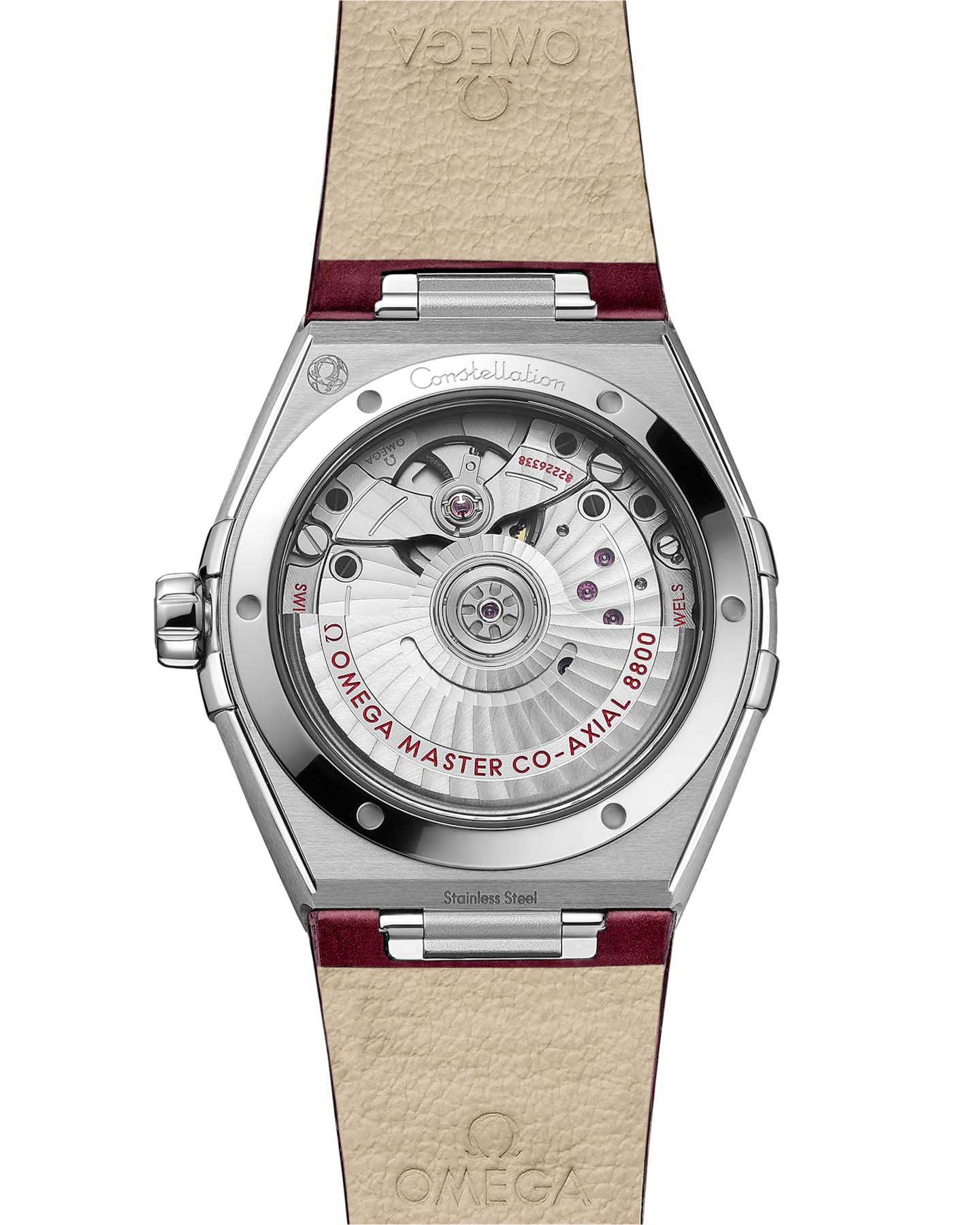 . Знаменитый монобраслет Constellation заменен на кожаный ремешок того же цвета, что и циферблат. Сердцем этих часов является коаксиальный хронометр OMEGA Master Chronometer Calibre 8800, видимый через устойчивое к царапинам сапфировое стеклоСапфировое стеклоПрочный и надёжный материал из кристалла сапфира синтетического происхождения, характеризующийся особой твёрдостью и устойчивостью к царапинам и повреждениям..