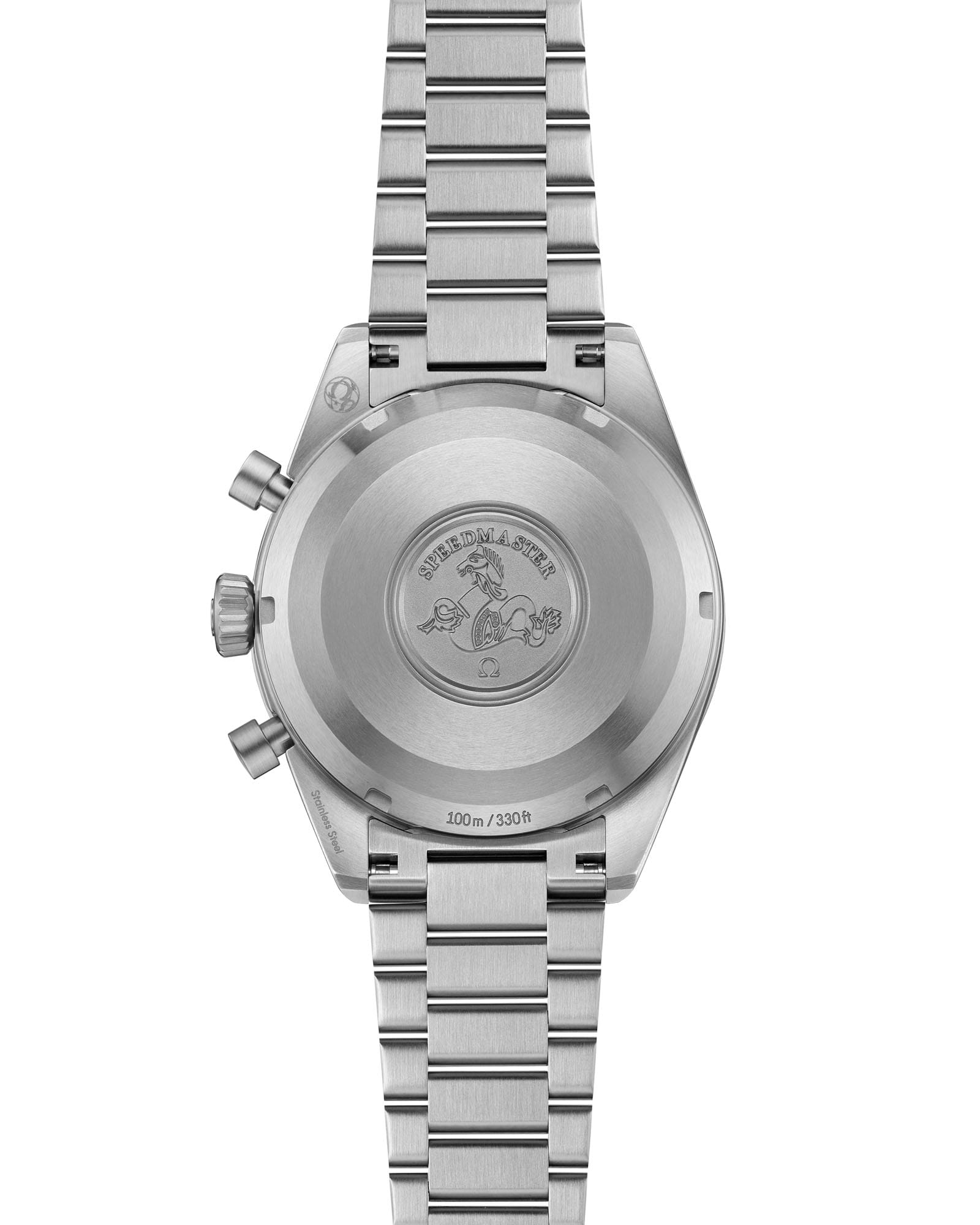 Speedmaster, участник всех шести лунных миссий, предстает в новой авиационной ипостаси, вдохновленной легендарной моделью 1957 года и космическим наследием бренда. 40,85-мм корпус из сатинированной нержавеющей стали обрамляет черный циферблат с зернистой текстурой, где внешнее кольцо цвета родия контрастирует с метками Super-LumiNovaЛюминесцентное покрытиеПозволяет считывать показания времени в темноте. Производители наносят на стрелки, часовые индексы, безель или поверхность циферблата светонакопительный состав, дающий холодное свечение., излучающими зеленое свечение.  Авиационный стиль кокпита воплощен в двух опаловых счетчиках: на "3 часах" расположен 60-минутный и 12-часовой счетчик, стилизованный под топливный указатель, с матовой оранжевой стрелкой, а на "9 часах" - счетчик малых секунд с желтой стрелкой и синим искусственным горизонтом. Черные матовые стрелки с Super-LumiNovaЛюминесцентное покрытиеПозволяет считывать показания времени в темноте. Производители наносят на стрелки, часовые индексы, безель или поверхность циферблата светонакопительный состав, дающий холодное свечение. сочетаются с центральной хронографной стрелкойХронографФункция позволяет измерять отрезки времени с особой точностью: часы, минуты, секунды. Верным признаком хронографа является наличие на циферблате 3 дополнительных окошек-счётчиков., чей оранжевый наконечник напоминает авиационные приборы. Модель дополнена браслетом с плоскими звеньями и фирменной системой "винт-штифт", а в комплекте идут ремень NATO с кевларовым плетением и дорожный чехол с инструментами. В сердце часов - калибр OMEGA Co-Axial Master Chronometer 9900, продолжающий традиции точности.