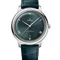 Коллекция OMEGA De Ville Prestige, не теряющая актуальности с 1994 года, предстает в третьем поколении. Часы остаются символом классического дизайна и изысканной элегантности. Модели, привлекающие внимание широкой гаммой узоров, отделок и цветов, идеально подойдут для людей с разным образом жизни и характером. Часы в корпусе диаметром 40 мм из нержавеющей стали имеют выпуклый циферблат с PVD-покрытиемPVDУльтратонкое покрытие наносится в технике вакуумного напыления, сочетает в себе нитрид титана особой прочности со слоем золота или оксида хрома. Несёт в себе декоративную или защитную функцию. оттенка зеленой сосны и радиальным сатинированием. На циферблате расположены стрелки с родиевым покрытием, а также чередующиеся римские цифры и индексы в форме кабошона. Изделие с лаконичным дизайном дополнено окошком даты в положении «6 часов» и минутной шкалой в стиле «железная дорога» на внешнем секторе. Часы с сертификатом Master Chronometer представлены с кожаным ремешком оттенка зеленой сосны. Модель оснащена калибром OMEGA Master Co-Axial 8800, который виден сквозь устойчивое к царапинам сапфировое стеклоСапфировое стеклоПрочный и надёжный материал из кристалла сапфира синтетического происхождения, характеризующийся особой твёрдостью и устойчивостью к царапинам и повреждениям. задней крышки корпуса.