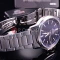Аксессуар в серебристо-синей расцветке отличается высокой точностью хода благодаря автоматическому японскому механизму Orient 46943. Калибр сохраняет запас хода на 40 часов. Корпус выполнен из долговечной стали 316L с антикоррозионными свойствами. Стрелки имеют люминесцентную подсветкуЛюминесцентное покрытиеПозволяет считывать показания времени в темноте. Производители наносят на стрелки, часовые индексы, безель или поверхность циферблата светонакопительный состав, дающий холодное свечение., на метке 3 часов расположено окошко даты и дня недели.
