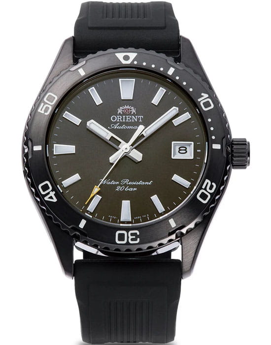 Orient RA‑AC0Q10N — компактная автоматическая модель в серии дайверов Orient, сочетающая утилитарный характер и элегантный сдержанный дизайн. Корпус диаметром 39,9 мм и длиной от ушка до ушка 46,5 мм выполнен из нержавеющей стали с тёмным IP-покрытиемIP-покрытиеМетод ионного напыления. Демонстрирует повышенную устойчивость к истиранию, окислению и химическим веществам. Под воздействием высокого давления и температуры около 1500°C молекулы металла надёжно соединяются с частицами корпуса часов., придающим часам современный и строгий облик.