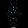 Многокомпонентный корпус из нержавеющей стали, керамический безельБезельВнешний ободок, закрепляющий стекло. В спортивных часах так называется поворотное кольцо с делениями на циферблате, выполняет роль таймера – замеряет отрезки времени на шкале. Неподвижный безель – элемент декора. Однонаправленно вращающийся безель на дайверских часах позволяет фиксировать моменты погружения и выныривания на поверхность. с минутной шкалой. Сапфировое стеклоСапфировое стеклоПрочный и надёжный материал из кристалла сапфира синтетического происхождения, характеризующийся особой твёрдостью и устойчивостью к царапинам и повреждениям., выпуклое с обеих сторон, внутреннее антибликовое покрытие. Прозрачная задняя крышка из сапфирового стеклаСапфировое стеклоПрочный и надёжный материал из кристалла сапфира синтетического происхождения, характеризующийся особой твёрдостью и устойчивостью к царапинам и повреждениям.. Стрелки и метки с люминесцентным покрытиемЛюминесцентное покрытиеПозволяет считывать показания времени в темноте. Производители наносят на стрелки, часовые индексы, безель или поверхность циферблата светонакопительный состав, дающий холодное свечение.. Завинчивающаяся заводная головка. Ограниченная серия из 2000 экземпляров.
