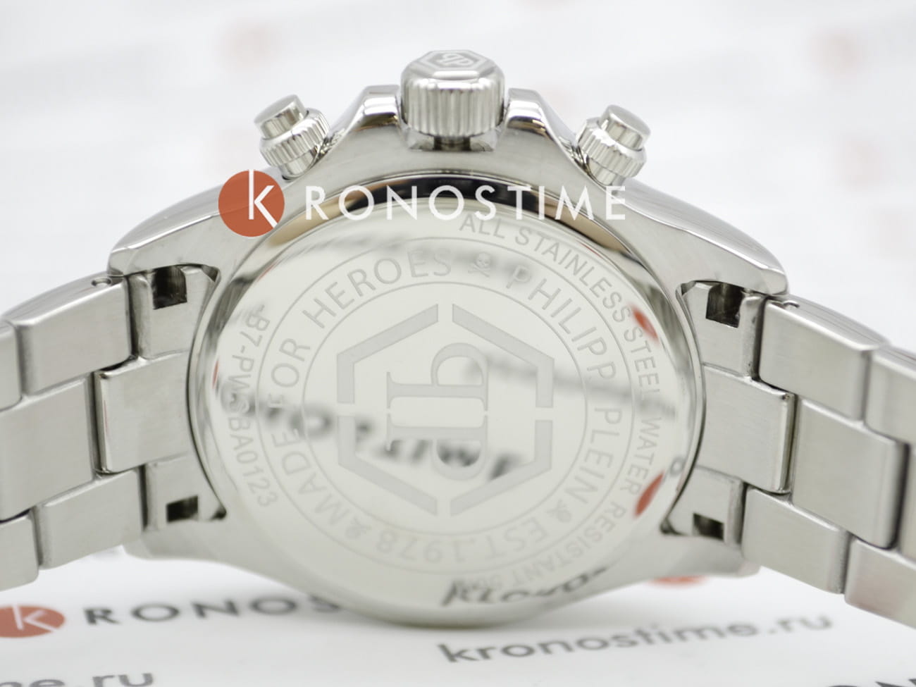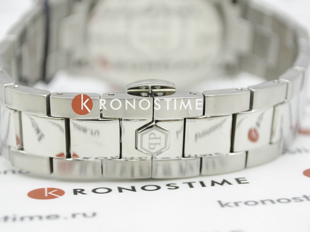 Яркие женские часы-хронографХронографФункция позволяет измерять отрезки времени с особой точностью: часы, минуты, секунды. Верным признаком хронографа является наличие на циферблате 3 дополнительных окошек-счётчиков. с секундомеромСекундомерСекундоме́р — прибор, способный измерять интервалы времени с точностью до долей секунды. Philipp Plein Nobile Lady PWSBA0123, кварцевый механизм с высокой точностью. 12 и 24-часовой формат времени. Класс водозащиты: 50 метров, позволит защитить корпус от случайных брызг или капель дождя. Корпус и браслет часов изготовлены из нержавеющей стали. Стрелки с люминесцентным покрытиемЛюминесцентное покрытиеПозволяет считывать показания времени в темноте. Производители наносят на стрелки, часовые индексы, безель или поверхность циферблата светонакопительный состав, дающий холодное свечение.. Стальной браслет на застёжке-бабочке с кнопкамиЗастёжка "бабочка"Такой вид застёжки дополняется предохранителями, помогающими избежать случайного раскрытия браслета. Обладают изящным исполнением. . Циферблат инкрустирован кристаллами Preciosa.