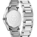 Женские кварцевые часы Philipp Plein Plein Icon Chain PW1FA0125 — это стильное сочетание элегантности и современного дизайна. Изящный корпус выполнен из нержавеющей стали, диаметром 36 мм, что придаст образу женственности и романтизма. Изысканный циферблат с метками в виде штрихов придает модели особый блеск. Циферблат защищен минеральным стекломМинеральное стеклоМинеральное стекло представляет собой искусственно выращенный минерал кварца. Такое стекло отличается особой устойчивостью к повреждениям и царапинам. Уступает по некоторым качествам сапфировому стеклу., обеспечивающий устойчивость к царапинам и украшен кристаллами. Стрелки с люминесцентным покрытиемЛюминесцентное покрытиеПозволяет считывать показания времени в темноте. Производители наносят на стрелки, часовые индексы, безель или поверхность циферблата светонакопительный состав, дающий холодное свечение.. Часы оснащены надежным кварцевым механизмом. Стальной браслет на застёжке-бабочкеЗастёжка "бабочка"Такой вид застёжки дополняется предохранителями, помогающими избежать случайного раскрытия браслета. Обладают изящным исполнением. , гарантирует комфортное и безопасное ношение. Класс водозащиты: 50 метров позволит защитить корпус от случайных брызг или капель дождя. Phlipp Plein — отличный выбор для тех, кто ценит яркость и качество.