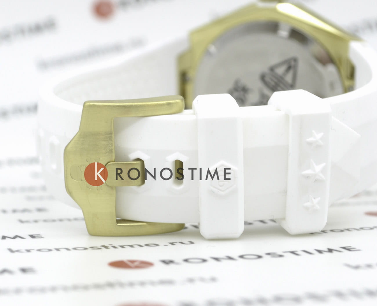 Высокопрочное минеральное стеклоМинеральное стеклоМинеральное стекло представляет собой искусственно выращенный минерал кварца. Такое стекло отличается особой устойчивостью к повреждениям и царапинам. Уступает по некоторым качествам сапфировому стеклу.. Граненая заводная головка с защитой. Белый силиконовый ремешок с классической застежкой украшен объемным черепом и стальной вставкой. Фирменная дизайнерская упаковка.