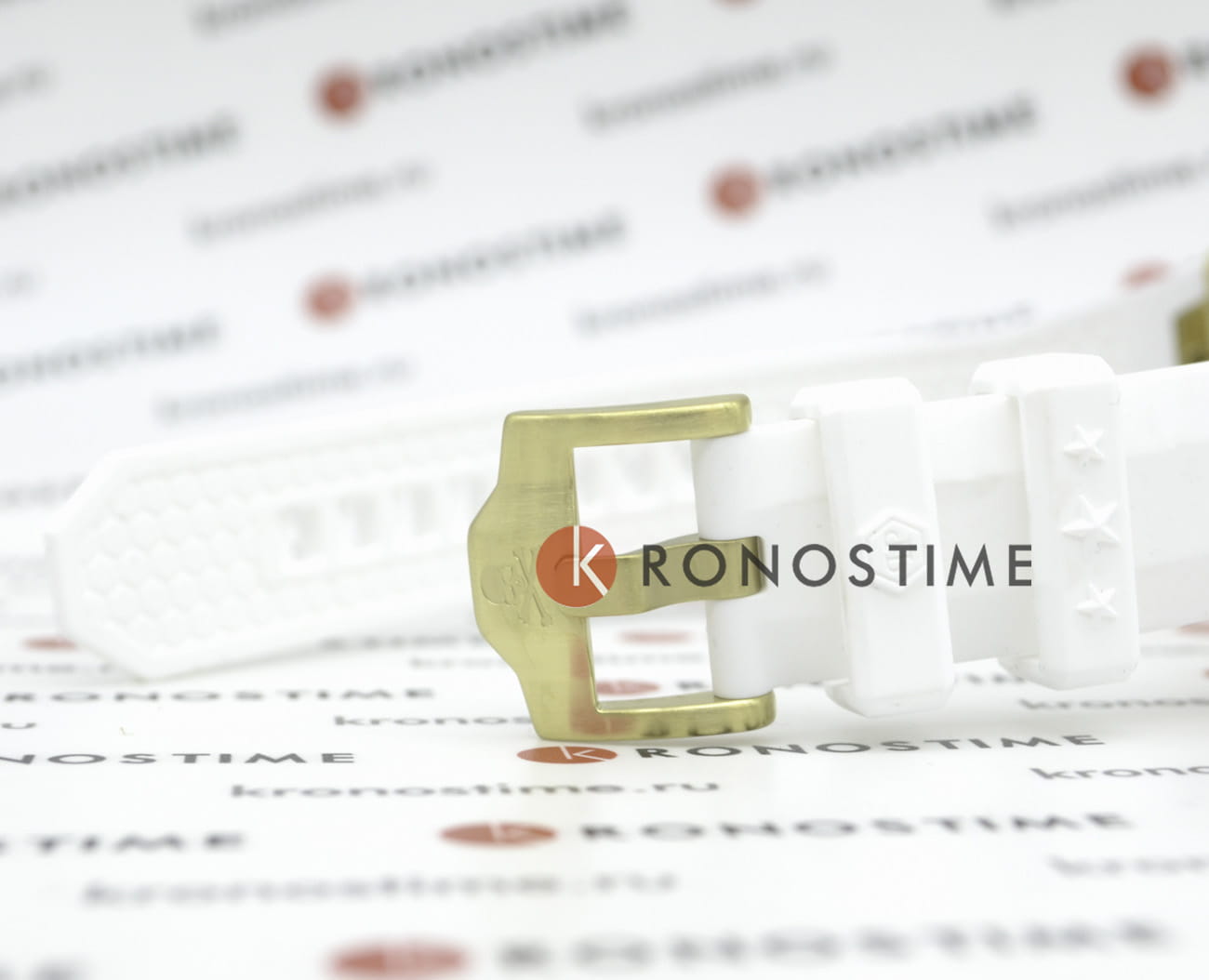 Стальной корпус с золотым IP-покрытиемIP-покрытиеМетод ионного напыления. Демонстрирует повышенную устойчивость к истиранию, окислению и химическим веществам. Под воздействием высокого давления и температуры около 1500°C молекулы металла надёжно соединяются с частицами корпуса часов.. БезельБезельВнешний ободок, закрепляющий стекло. В спортивных часах так называется поворотное кольцо с делениями на циферблате, выполняет роль таймера – замеряет отрезки времени на шкале. Неподвижный безель – элемент декора. Однонаправленно вращающийся безель на дайверских часах позволяет фиксировать моменты погружения и выныривания на поверхность. украшен шестиугольными логотипами бренда, расположенными симметрично слева и справа, сверху украшен символичным логотипом Philipp Plein, а снизу украшен названием коллекции ''The Skull''. Метки в виде штрихов.