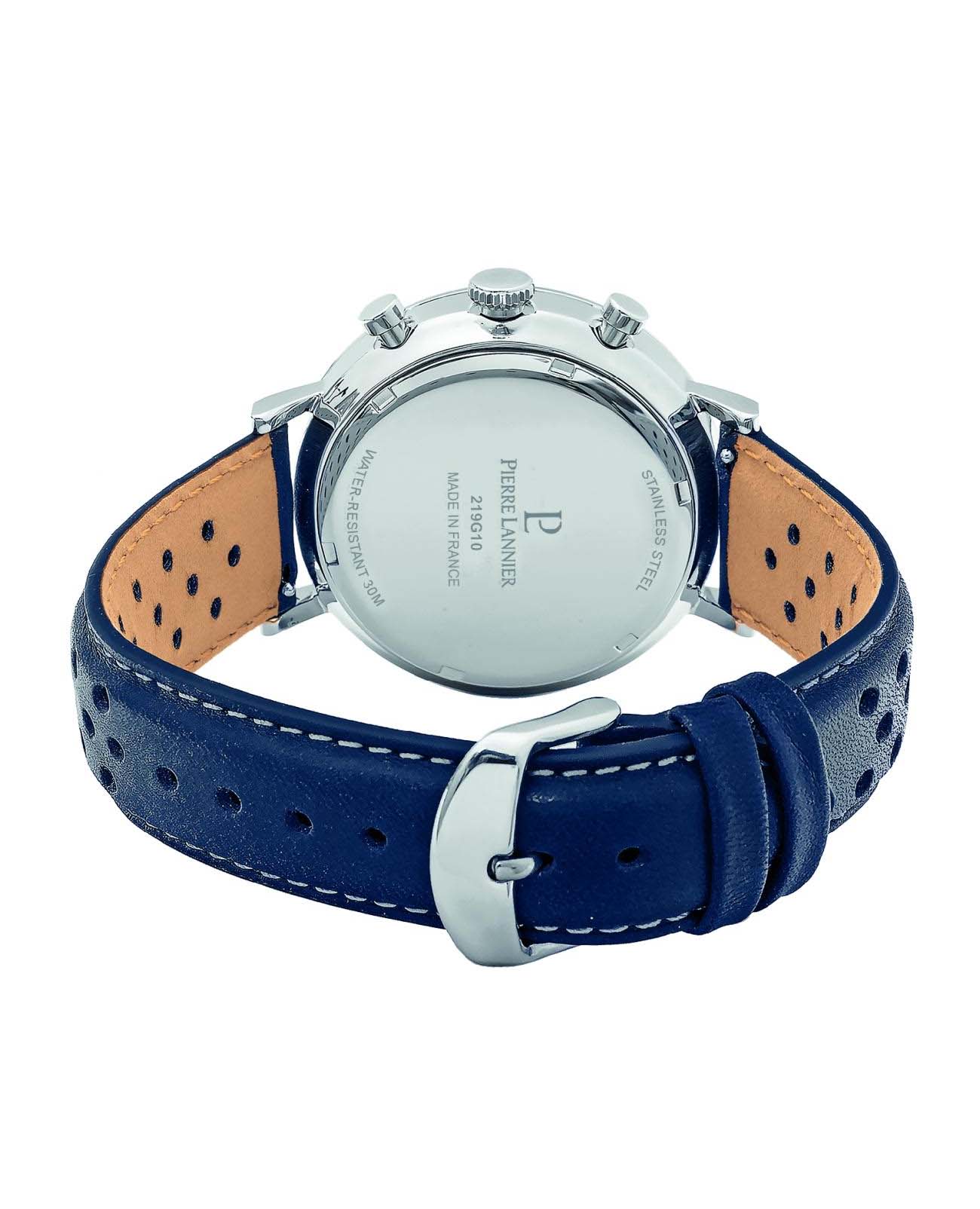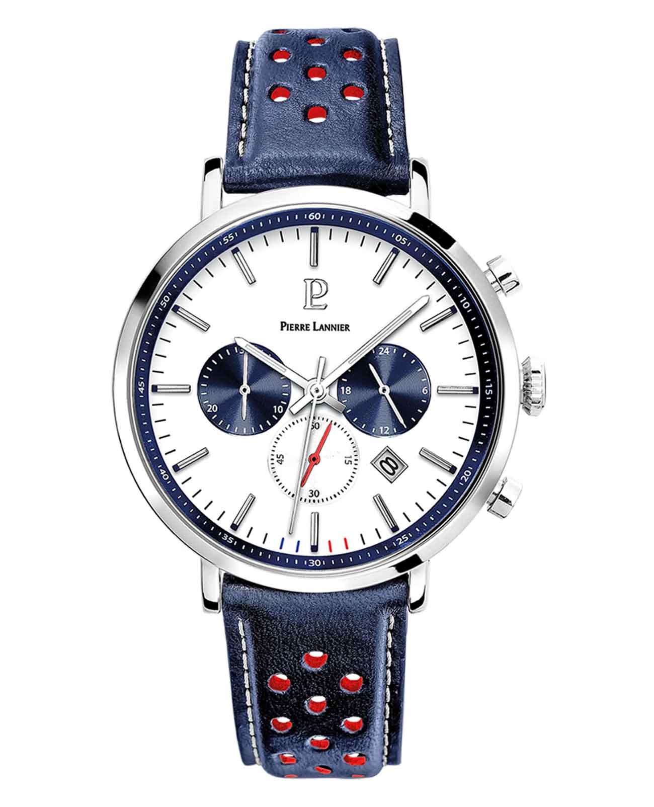 Мужские кварцевые часы-хронографХронографФункция позволяет измерять отрезки времени с особой точностью: часы, минуты, секунды. Верным признаком хронографа является наличие на циферблате 3 дополнительных окошек-счётчиков. с секундомеромСекундомерСекундоме́р — прибор, способный измерять интервалы времени с точностью до долей секунды. Pierre Lannier Baron 219G106. Минеральное стеклоМинеральное стеклоМинеральное стекло представляет собой искусственно выращенный минерал кварца. Такое стекло отличается особой устойчивостью к повреждениям и царапинам. Уступает по некоторым качествам сапфировому стеклу. устойчивое к мелким механическим повреждениям. Корпус выполнен из нержавеющей стали. 12/24х часовой формат времени. Центральные часовая и минутная стрелки, секундная стрелка вынесена на малый циферблат. Окошко даты между 4 и 5 часам. Стрелки с люминесцентным покрытиемЛюминесцентное покрытиеПозволяет считывать показания времени в темноте. Производители наносят на стрелки, часовые индексы, безель или поверхность циферблата светонакопительный состав, дающий холодное свечение.. Водостойкость: 50 метров, позволит защитить корпус от случайных брызг или капель дождя. Кожаный ремешок на стандартной застёжке.