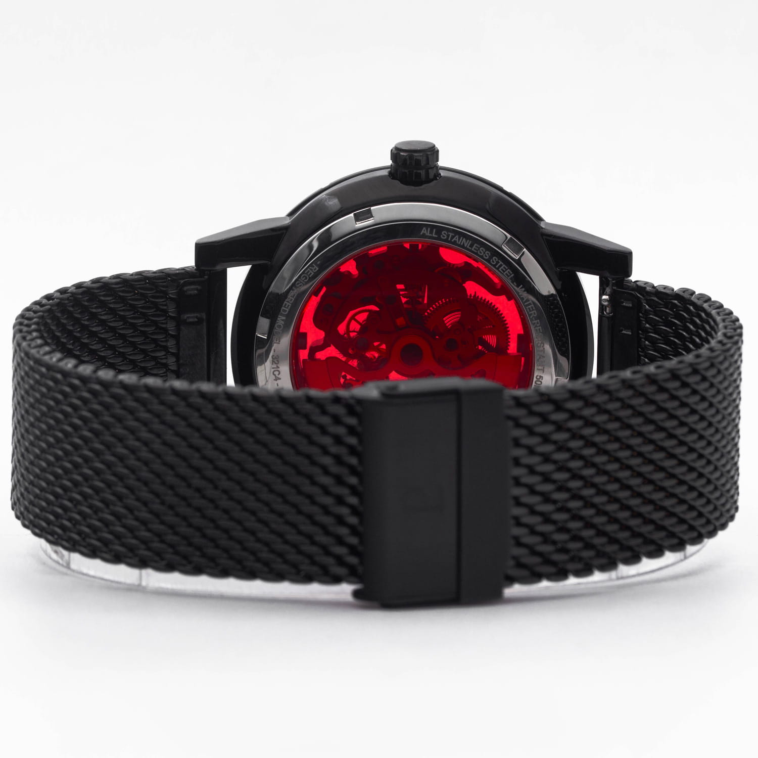 Мужские механические часы с автоподзаводом Pierre Lannier Automatic 321C438. Минеральное стеклоМинеральное стеклоМинеральное стекло представляет собой искусственно выращенный минерал кварца. Такое стекло отличается особой устойчивостью к повреждениям и царапинам. Уступает по некоторым качествам сапфировому стеклу. устойчивое к мелким механическим повреждениям. Центральные часовая, минутная и секундная стрелки. Корпус и браслет выполнены из нержавеющей стали с IP-покрытиемIP-покрытиеМетод ионного напыления. Демонстрирует повышенную устойчивость к истиранию, окислению и химическим веществам. Под воздействием высокого давления и температуры около 1500°C молекулы металла надёжно соединяются с частицами корпуса часов.. Водостойкость: 50 метров, позволит защитить корпус от случайных брызг или капель дождя. Стрелки с люминесцентным покрытиемЛюминесцентное покрытиеПозволяет считывать показания времени в темноте. Производители наносят на стрелки, часовые индексы, безель или поверхность циферблата светонакопительный состав, дающий холодное свечение.. Черный скелетонизированный циферблат. Браслет на раскладной застёжкеРаскладная застёжкаТакой тип застёжки используется только на браслетах из металла. Она никогда не раскрывается полностью, происходит разделение на 2 и более частей. Раскладывающая застёжка снизит вероятность потери часов к минимуму.. Прозрачная задняя крышка.
