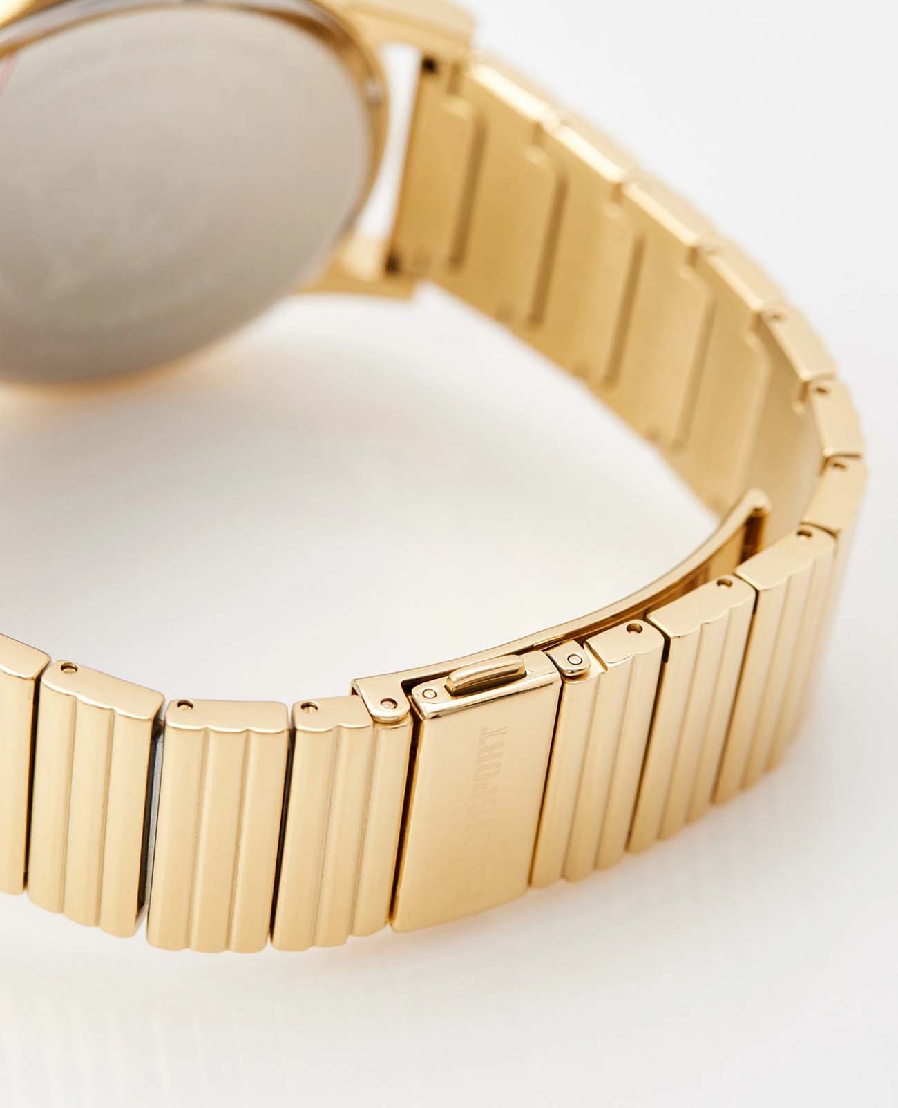 Стрелки часов покрыты люминесцентным составомЛюминесцентное покрытиеПозволяет считывать показания времени в темноте. Производители наносят на стрелки, часовые индексы, безель или поверхность циферблата светонакопительный состав, дающий холодное свечение., что позволяет легко считывать время даже в условиях низкой освещённости. Стальной браслет с раскладывающейся IPIP-покрытиеМетод ионного напыления. Демонстрирует повышенную устойчивость к истиранию, окислению и химическим веществам. Под воздействием высокого давления и температуры около 1500°C молекулы металла надёжно соединяются с частицами корпуса часов.-застёжкой обеспечивает комфорт и удобство при ношении.