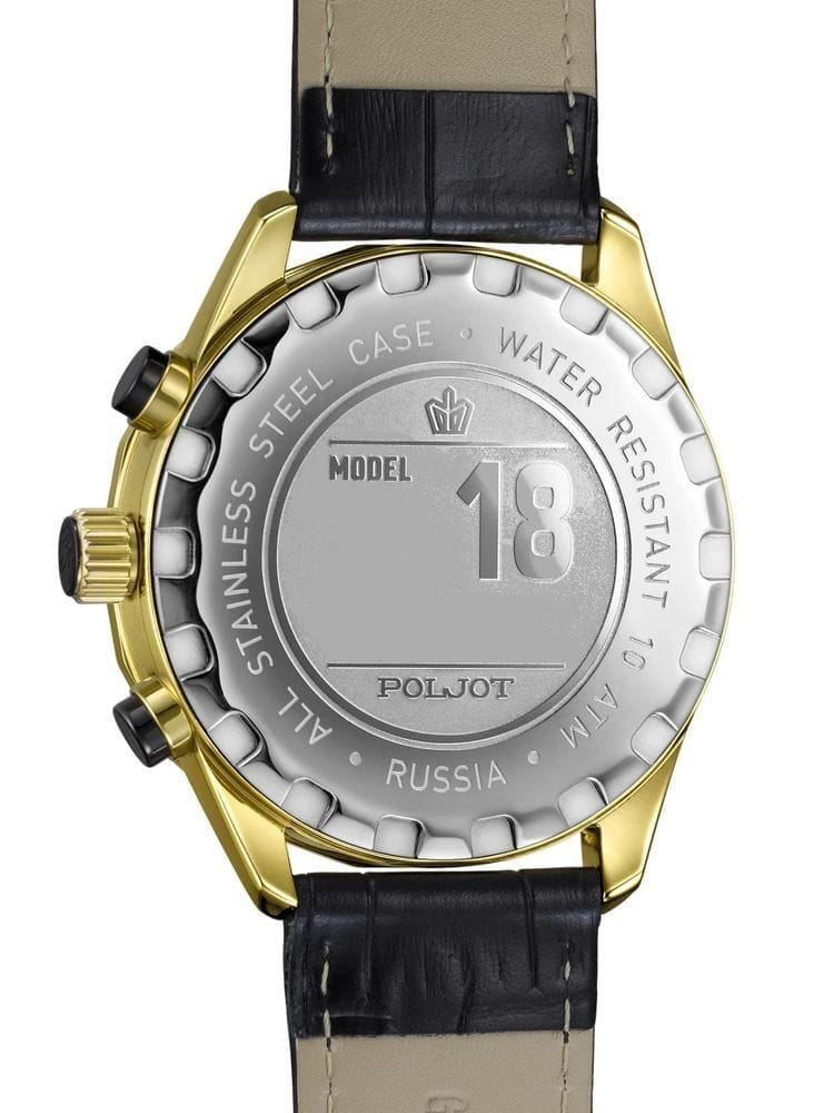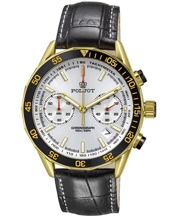 Poljot 6S21.186259 — яркие мужские часы с выразительным спортивным характером и акцентом на функциональность. Корпус из нержавеющей стали с PVD-покрытиемPVDУльтратонкое покрытие наносится в технике вакуумного напыления, сочетает в себе нитрид титана особой прочности со слоем золота или оксида хрома. Несёт в себе декоративную или защитную функцию. придаёт модели надёжность и солидность, а насыщенный циферблат с контрастными счётчиками хронографаХронографФункция позволяет измерять отрезки времени с особой точностью: часы, минуты, секунды. Верным признаком хронографа является наличие на циферблате 3 дополнительных окошек-счётчиков. создаёт динамичный и энергичный облик. БезельБезельВнешний ободок, закрепляющий стекло. В спортивных часах так называется поворотное кольцо с делениями на циферблате, выполняет роль таймера – замеряет отрезки времени на шкале. Неподвижный безель – элемент декора. Однонаправленно вращающийся безель на дайверских часах позволяет фиксировать моменты погружения и выныривания на поверхность. с PVD-покрытиемPVDУльтратонкое покрытие наносится в технике вакуумного напыления, сочетает в себе нитрид титана особой прочности со слоем золота или оксида хрома. Несёт в себе декоративную или защитную функцию.. Широкие стрелки и метки с люминесцентным покрытиемЛюминесцентное покрытиеПозволяет считывать показания времени в темноте. Производители наносят на стрелки, часовые индексы, безель или поверхность циферблата светонакопительный состав, дающий холодное свечение. обеспечивают отличную читаемость в любых условиях, а внешний обод с минутной шкалой подчёркивает спортивный стиль. Окно даты добавляет практичности. Прочное минеральное стеклоМинеральное стеклоМинеральное стекло представляет собой искусственно выращенный минерал кварца. Такое стекло отличается особой устойчивостью к повреждениям и царапинам. Уступает по некоторым качествам сапфировому стеклу. надёжно защищает циферблат от повреждений, а ремешок из натуральной кожи гармонично дополняет контрастную цветовую палитру. Poljot — это смелое сочетание спортивной энергии, точности и современного дизайна для активного и уверенного мужчины.