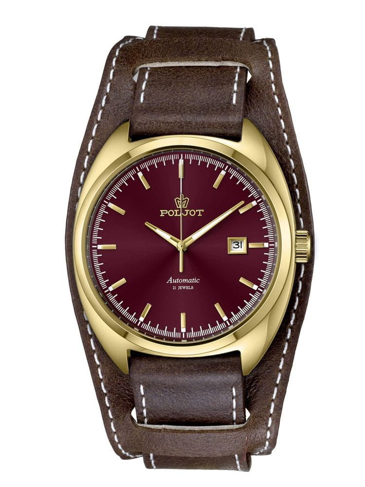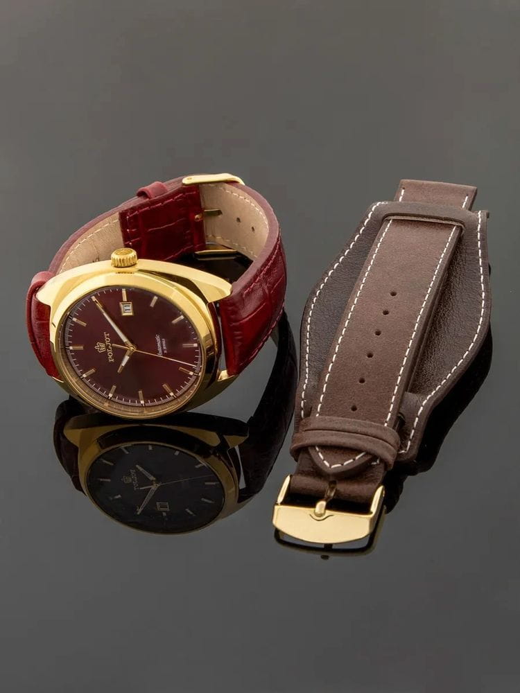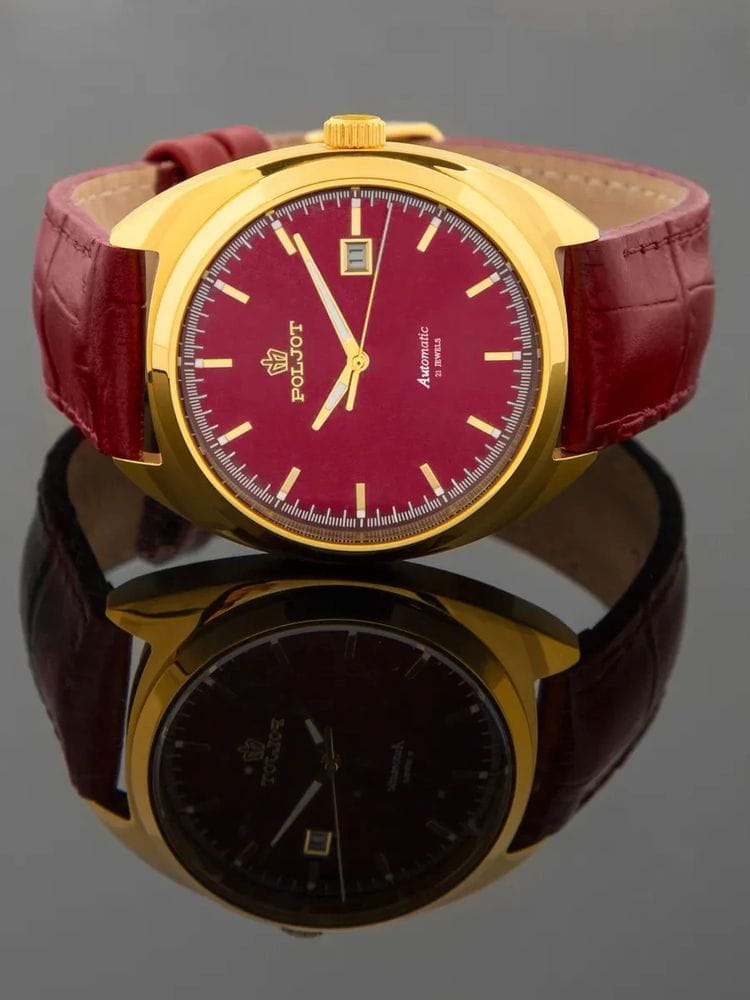 Poljot 8215.246273 — элегантные механические часы с автоподзаводом, сочетающем силу и изысканность. Корпус из нержавеющей стали с PVD-покрытиемPVDУльтратонкое покрытие наносится в технике вакуумного напыления, сочетает в себе нитрид титана особой прочности со слоем золота или оксида хрома. Несёт в себе декоративную или защитную функцию. подчеркивает надёжность и лаконичность дизайна, а глубокий циферблат с золотистыми стрелками придаёт модели благородный акцент. Проверенный японский механизм Miyota 8215 обеспечивает точность хода и долговечность, а плавное движение секундной стрелки подчёркивает качество сборки. Метки и стрелки с люминесцентным покрытиемЛюминесцентное покрытиеПозволяет считывать показания времени в темноте. Производители наносят на стрелки, часовые индексы, безель или поверхность циферблата светонакопительный состав, дающий холодное свечение. обеспечивают отличную читаемость при любом освещении, а окно даты добавляет практичности. Прочное минеральное стеклоМинеральное стеклоМинеральное стекло представляет собой искусственно выращенный минерал кварца. Такое стекло отличается особой устойчивостью к повреждениям и царапинам. Уступает по некоторым качествам сапфировому стеклу. защищает циферблат от царапин, а ремешок из натуральной кожи в тон циферблату завершает утончённый облик модели. Poljot — гармония классики и современной механики, созданная для тех, кто ценит традиции и индивидуальность в каждой детали. В комплекте дополнительный ремешок с напульсником.