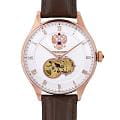 Мужские часы из коллекции «Президент» — это классический аксессуар, сочетающий в себе элегантность и надёжность. Модель выполнена в круглой форме с корпусом диаметром 42,5 мм и толщиной 16,3 мм, защищённым минеральным стекломМинеральное стеклоМинеральное стекло представляет собой искусственно выращенный минерал кварца. Такое стекло отличается особой устойчивостью к повреждениям и царапинам. Уступает по некоторым качествам сапфировому стеклу., устойчивым к мелким повреждениям. Браслет коричневого цвета изготовлен из натуральной кожи и дополнен стандартной застёжкой, что делает его удобным и практичным для повседневного использования. Часы оснащены механизмом с автоподзаводом, обеспечивающим точность хода и минимальное обслуживание. Прозрачная задняя крышка украшена изображением Герба России, что подчёркивает национальную принадлежность и уникальность модели. Водонепроницаемость позволяет использовать модель в повседневных условиях — при мытье рук или под лёгким дождём. Эти часы станут универсальным аксессуаром для тех, кто ценит сочетание стиля, качества и символики — идеальный выбор для уверенных в себе мужчин, следящих за своим имиджем и предпочитающих выделяться.