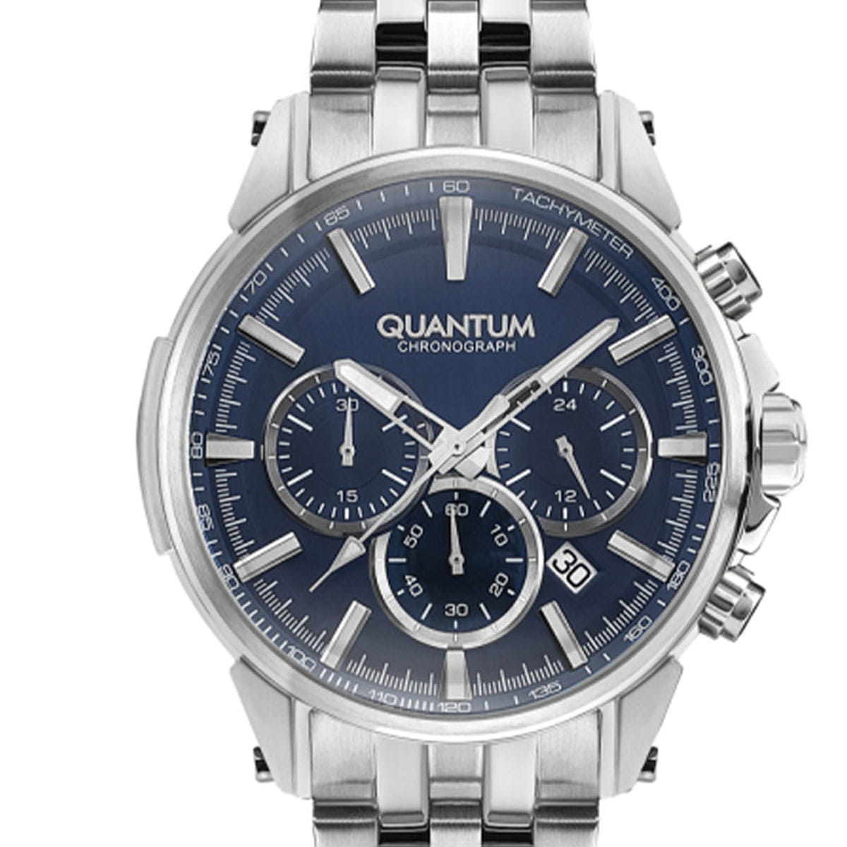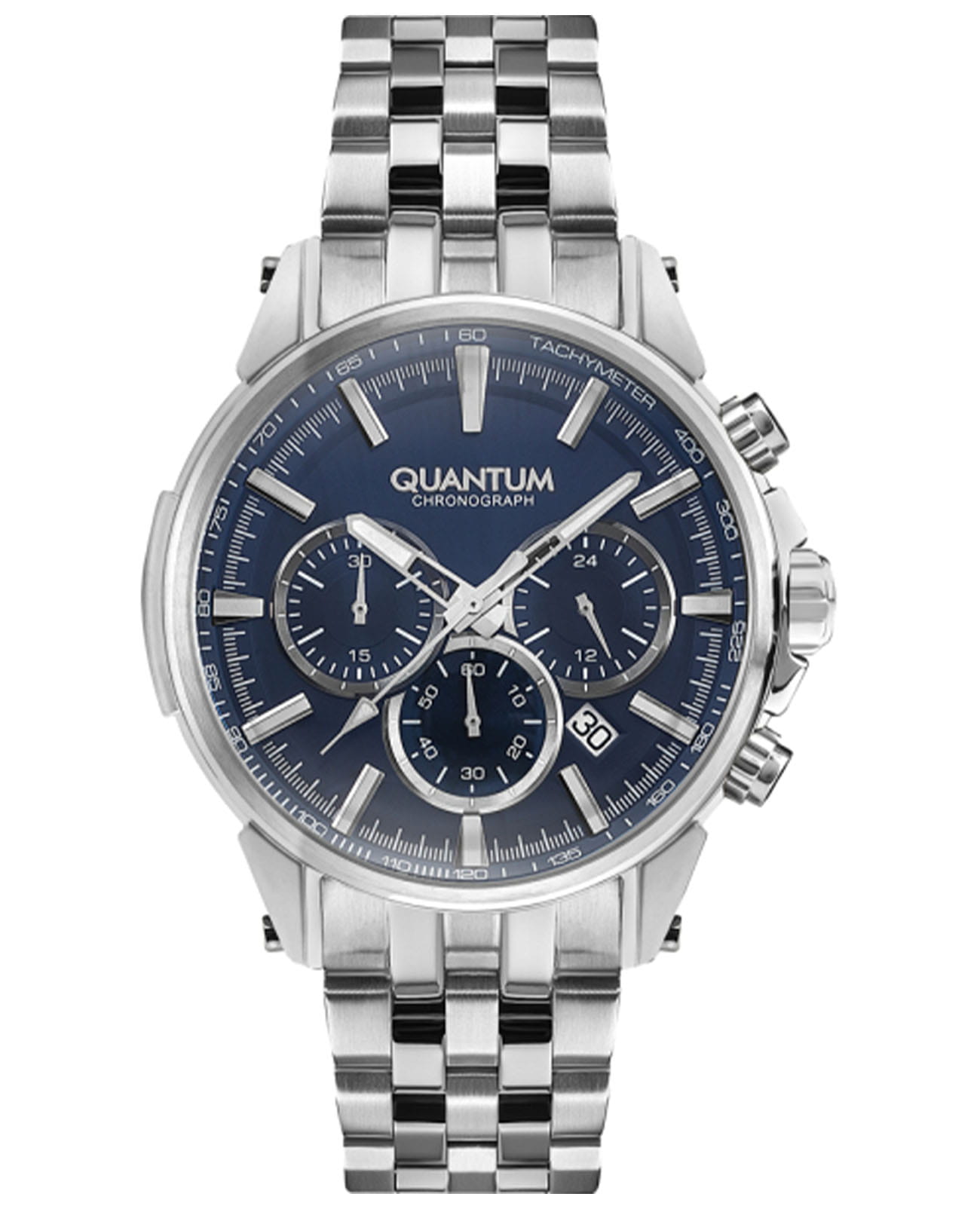 Мужские часы c хронографомХронографФункция позволяет измерять отрезки времени с особой точностью: часы, минуты, секунды. Верным признаком хронографа является наличие на циферблате 3 дополнительных окошек-счётчиков. Quantum PWG882.390, кварцевый механизм с высокой точностью. Минеральное стеклоМинеральное стеклоМинеральное стекло представляет собой искусственно выращенный минерал кварца. Такое стекло отличается особой устойчивостью к повреждениям и царапинам. Уступает по некоторым качествам сапфировому стеклу. устойчивое к появлению царапин, обладающее высокой прозрачностью. Класс водозащиты: 50 метров, позволит защитить корпус от случайных брызг или капель дождя. Корпус и браслет часов изготовлены из стали . Стрелки и метки с люминесцентным покрытиемЛюминесцентное покрытиеПозволяет считывать показания времени в темноте. Производители наносят на стрелки, часовые индексы, безель или поверхность циферблата светонакопительный состав, дающий холодное свечение..Стальной браслет на раскладной застёжкеРаскладная застёжкаТакой тип застёжки используется только на браслетах из металла. Она никогда не раскрывается полностью, происходит разделение на 2 и более частей. Раскладывающая застёжка снизит вероятность потери часов к минимуму. Окошко даты находится в положении между 4 и 5 часов. ТахиметрТахиметрРазмеченная шкала, располагается на ободке или безеле часов. Тахиметр позволяет рассчитать скорость на определённом участке пути, расстояние измеряется в километрах или милях..