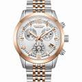 Часы оснащены кварцевым механизмом Seiko , гарантирующим высокую точность хода. Функция хронографХронографФункция позволяет измерять отрезки времени с особой точностью: часы, минуты, секунды. Верным признаком хронографа является наличие на циферблате 3 дополнительных окошек-счётчиков. и окошко даты добавляют модели практической пользы в повседневной жизни. На малом циферблате отображается время в 24-часовом формате, что удобно при планировании дня или работе в разных временных зонах. БезельБезельВнешний ободок, закрепляющий стекло. В спортивных часах так называется поворотное кольцо с делениями на циферблате, выполняет роль таймера – замеряет отрезки времени на шкале. Неподвижный безель – элемент декора. Однонаправленно вращающийся безель на дайверских часах позволяет фиксировать моменты погружения и выныривания на поверхность. с IP-покрытиемIP-покрытиеМетод ионного напыления. Демонстрирует повышенную устойчивость к истиранию, окислению и химическим веществам. Под воздействием высокого давления и температуры около 1500°C молекулы металла надёжно соединяются с частицами корпуса часов..