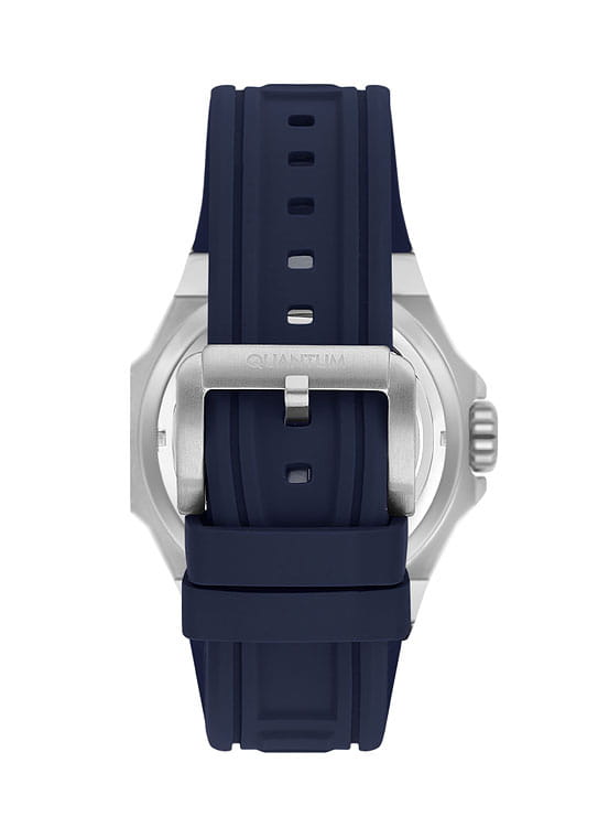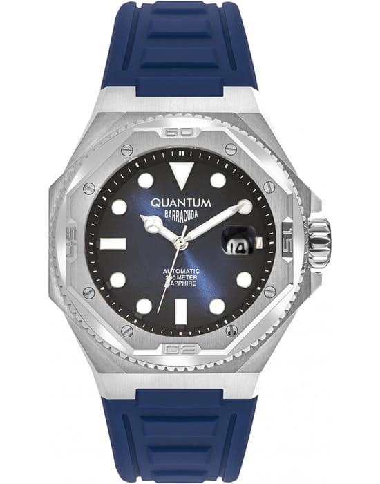 Мужские механические часы Quantum BAR1091.399. Сапфировое стеклоСапфировое стеклоПрочный и надёжный материал из кристалла сапфира синтетического происхождения, характеризующийся особой твёрдостью и устойчивостью к царапинам и повреждениям. устойчивое к появлению царапин, обладающее высокой прозрачностью. Класс водозащиты: 200 метров, позволит плавать, нырять и заниматься другими водными видами спорта. Корпус часов изготовлен из нержавеющей стали. Каучуковый ремешок. Окошко даты находится в положении 3 часов. Стрелки и метки с люминесцентным покрытиемЛюминесцентное покрытиеПозволяет считывать показания времени в темноте. Производители наносят на стрелки, часовые индексы, безель или поверхность циферблата светонакопительный состав, дающий холодное свечение..