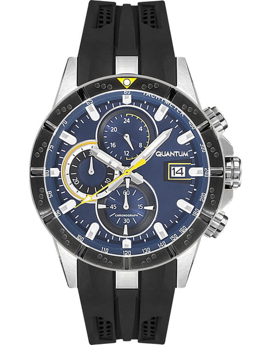 Мужские наручные часы-хронографХронографФункция позволяет измерять отрезки времени с особой точностью: часы, минуты, секунды. Верным признаком хронографа является наличие на циферблате 3 дополнительных окошек-счётчиков. Quantum HNG893.392, кварцевый механизм с высокой точностью. Минеральное стеклоМинеральное стеклоМинеральное стекло представляет собой искусственно выращенный минерал кварца. Такое стекло отличается особой устойчивостью к повреждениям и царапинам. Уступает по некоторым качествам сапфировому стеклу. устойчивое к появлению царапин, обладающее высокой прозрачностью. Класс водозащиты: 50 метров, позволит защитить корпус от случайных брызг или капель дождя. Стрелки с люминесцентным покрытиемЛюминесцентное покрытиеПозволяет считывать показания времени в темноте. Производители наносят на стрелки, часовые индексы, безель или поверхность циферблата светонакопительный состав, дающий холодное свечение.. Корпус часов изготовлен из нержавеющей стали. Каучуковый ремешок.