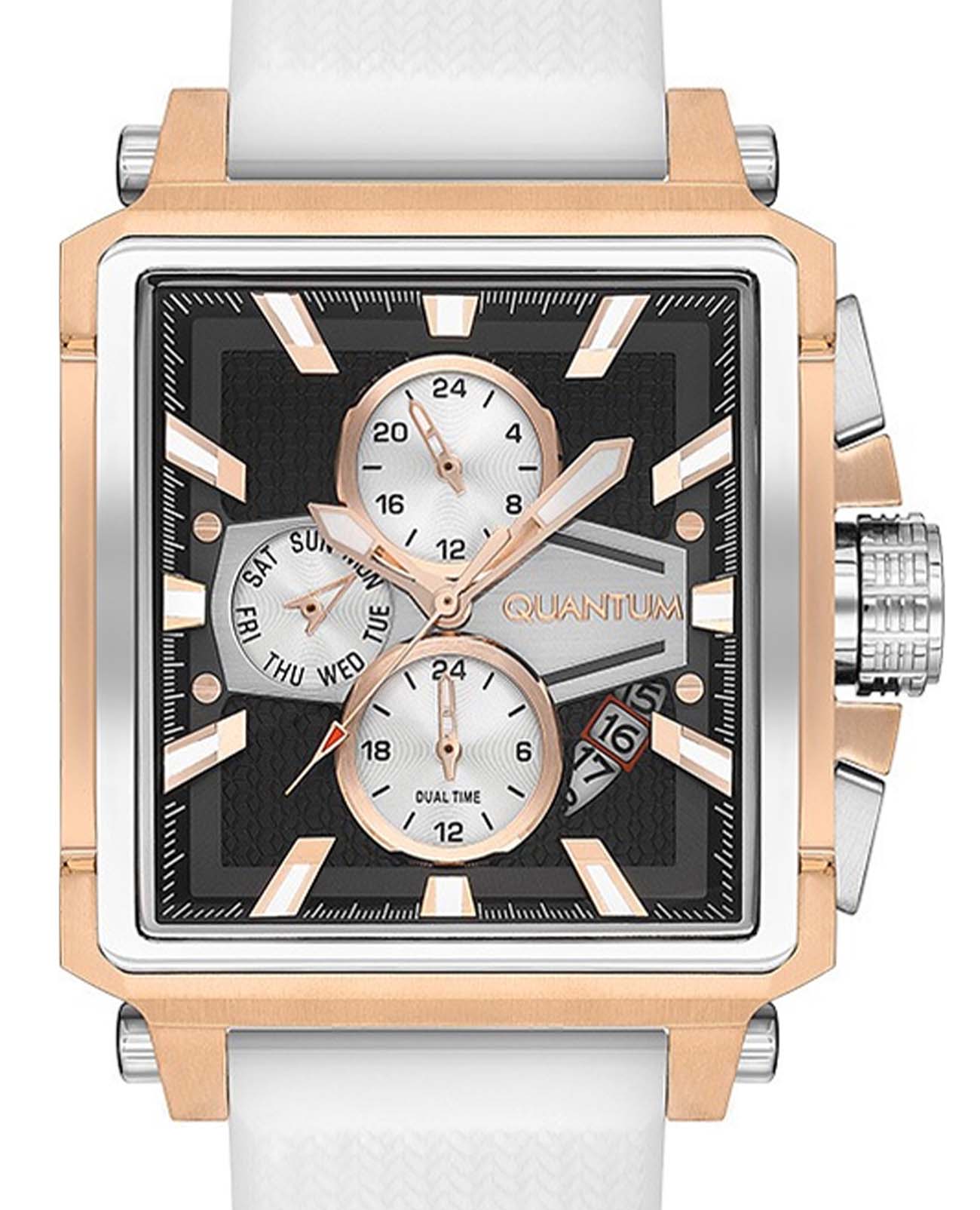 Мужские наручные часы Quantum HNG969.461, кварцевый механизм с высокой точностью. Минеральное стеклоМинеральное стеклоМинеральное стекло представляет собой искусственно выращенный минерал кварца. Такое стекло отличается особой устойчивостью к повреждениям и царапинам. Уступает по некоторым качествам сапфировому стеклу. устойчивое к появлению царапин, обладающее высокой прозрачностью. Класс водозащиты: 100 метров, позволит плавать, нырять и заниматься другими водными видами спорта. Стрелки с люминесцентным покрытиемЛюминесцентное покрытиеПозволяет считывать показания времени в темноте. Производители наносят на стрелки, часовые индексы, безель или поверхность циферблата светонакопительный состав, дающий холодное свечение.. Корпус часов изготовлен из нержавеющей стали с IP-покрытиемIP-покрытиеМетод ионного напыления. Демонстрирует повышенную устойчивость к истиранию, окислению и химическим веществам. Под воздействием высокого давления и температуры около 1500°C молекулы металла надёжно соединяются с частицами корпуса часов.. Силиконовый ремешок на стандартной застёжке. Окошко даты находится в положении между 4 и 5 часов.