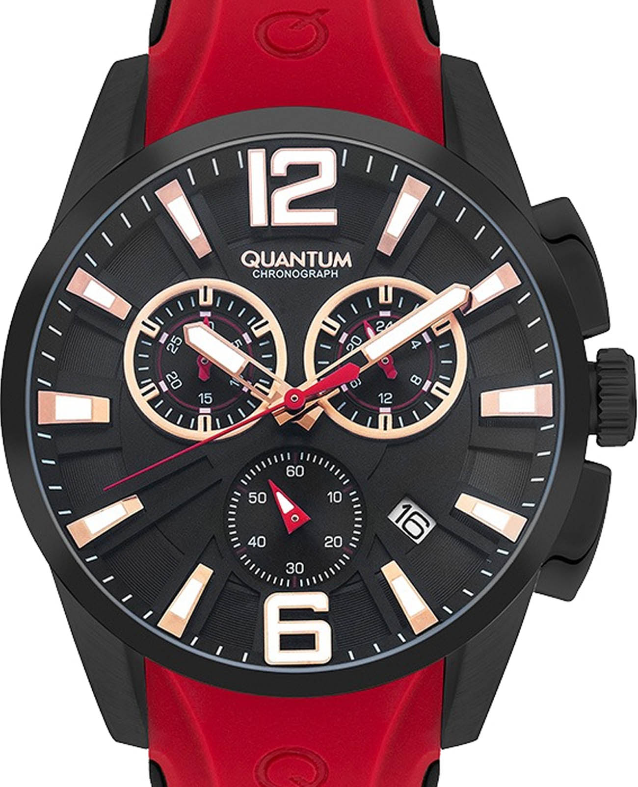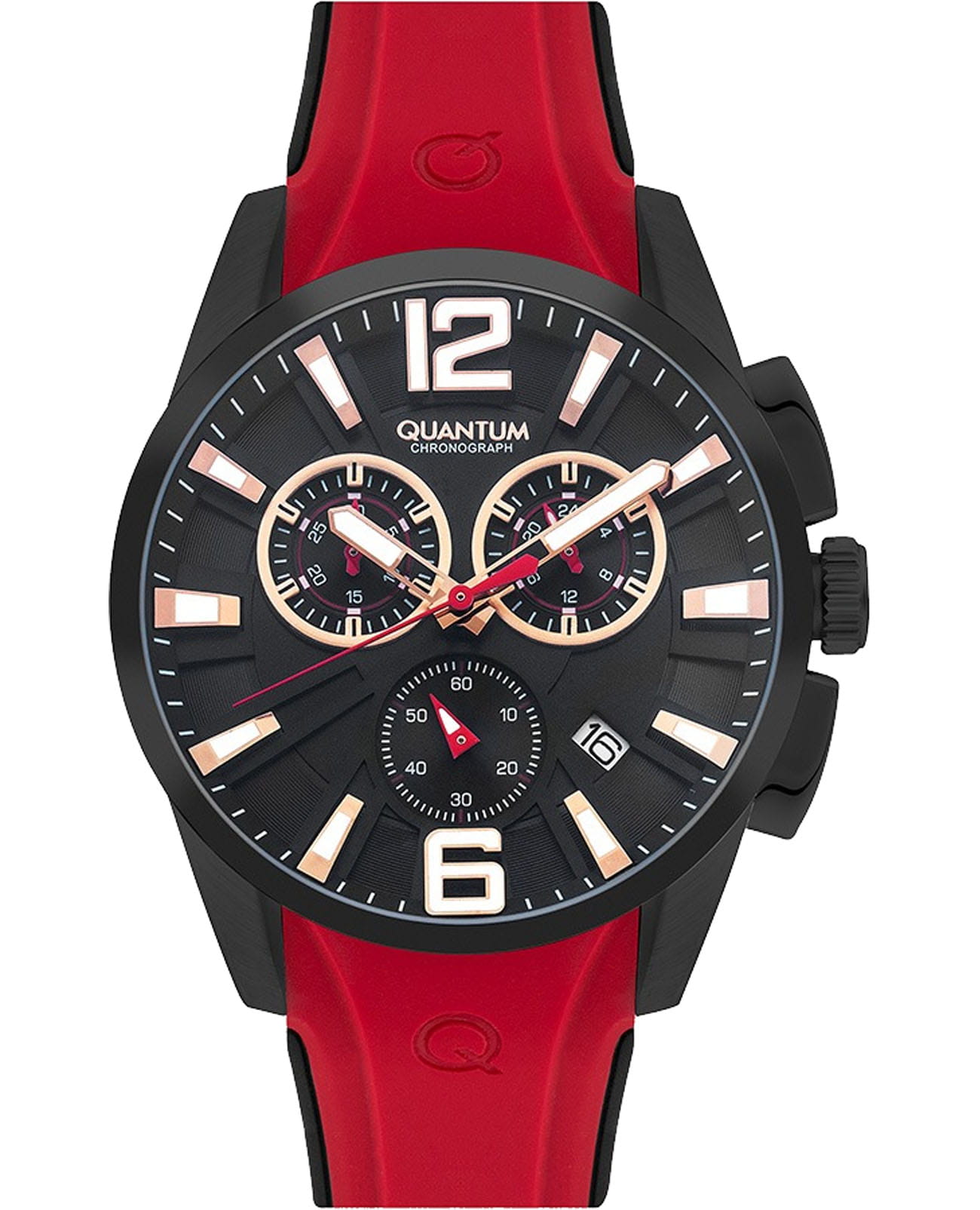 Мужские наручные часы-хронографХронографФункция позволяет измерять отрезки времени с особой точностью: часы, минуты, секунды. Верным признаком хронографа является наличие на циферблате 3 дополнительных окошек-счётчиков. Quantum PWG1076.658, кварцевый механизм с высокой точностью. Минеральное стеклоМинеральное стеклоМинеральное стекло представляет собой искусственно выращенный минерал кварца. Такое стекло отличается особой устойчивостью к повреждениям и царапинам. Уступает по некоторым качествам сапфировому стеклу. устойчивое к появлению царапин, обладающее высокой прозрачностью. Класс водозащиты: 100 метров, позволит плавать, нырять и заниматься другими водными видами спорта. Корпус часов изготовлен из нержавеющей стали с PVD-покрытиемPVDУльтратонкое покрытие наносится в технике вакуумного напыления, сочетает в себе нитрид титана особой прочности со слоем золота или оксида хрома. Несёт в себе декоративную или защитную функцию.. Стрелки и метки с люминесцентным покрытиемЛюминесцентное покрытиеПозволяет считывать показания времени в темноте. Производители наносят на стрелки, часовые индексы, безель или поверхность циферблата светонакопительный состав, дающий холодное свечение..Браслет из каучука на стандартной застежке.